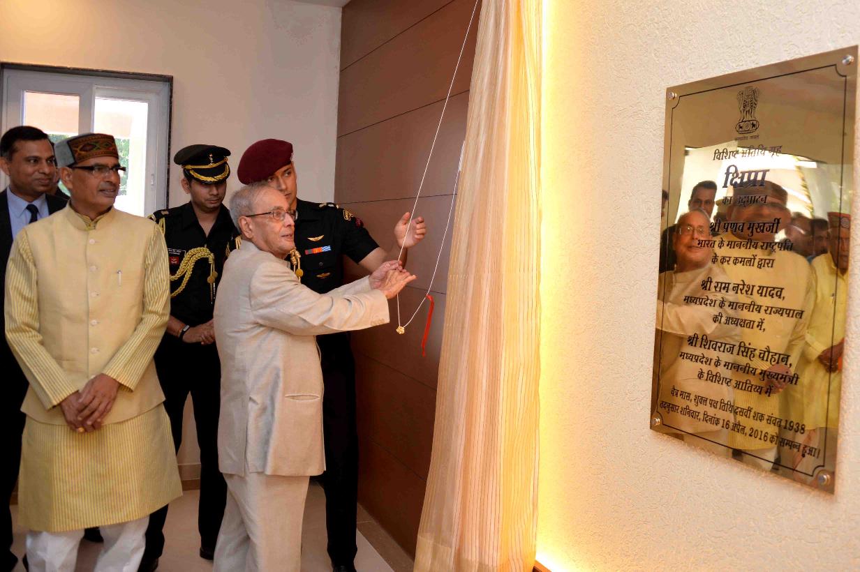 | Caption: | The President of India, Shri Pranab Mukherjee inaugurating the New Guest House, at Raj Bhavan in Bhopal on April 16, 2016. |