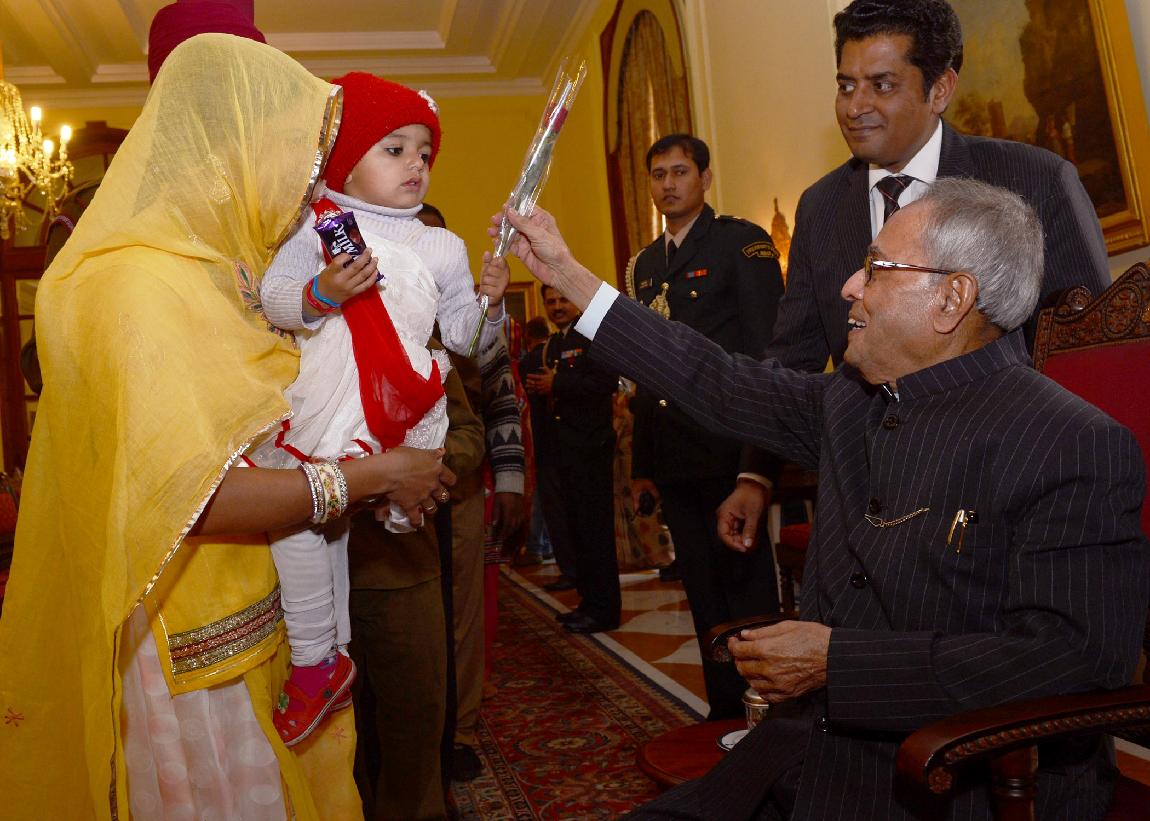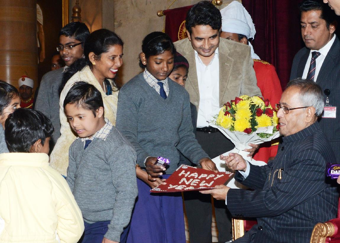 | Caption: | The President of India, Shri Pranab Mukherjee receiving Greetings from the People of all works of life on the occasion of New Year 2014 at Rashtrapati Bhavan in New Delhi on Jan 01, 2014 |