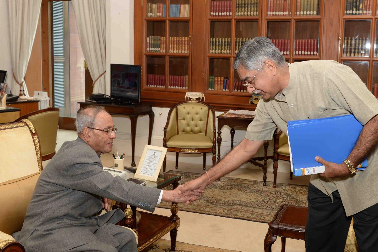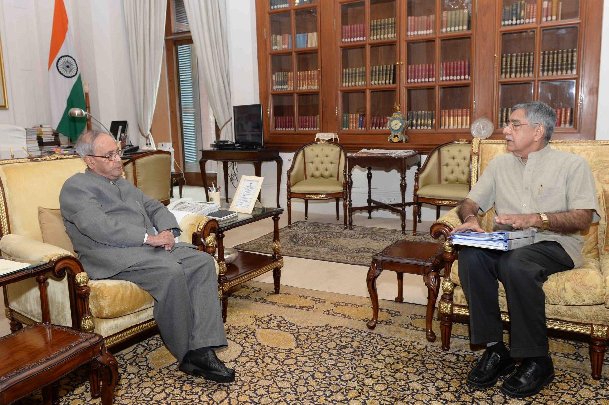 | Caption: | The President of India, Shri Pranab Mukherjee meeting with Shri Nalin Surei, former Ambassador of India to the People's Republic of China, at Rashtrapati Bhavan on May 09, 2016. |