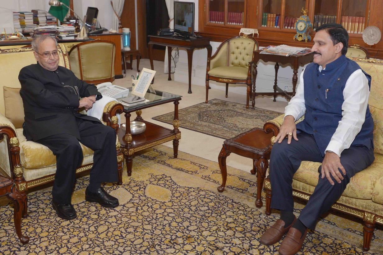| Caption: | The President of India, Shri Pranab Mukherjee meeting with Shri Y.S. Chowdary, Minister of State for Science & Technology and Earth Sciences, at Rashtrapati Bhavan on April 13, 2016. |