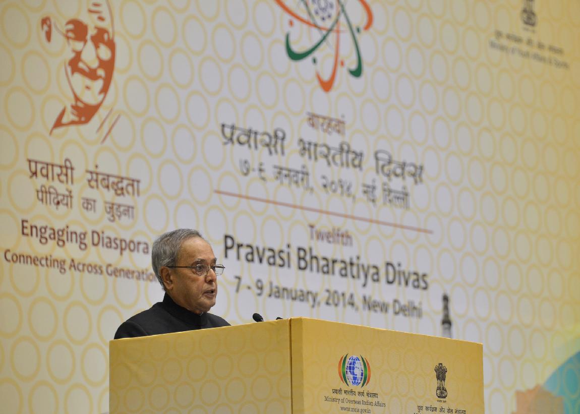 | Caption: | The President of India, Shri Pranab Mukherjee during the Valedictory Session of 12th Pravasi Bharatiya Divas Convention & Conferment of Pravasi Bharatiya Samman Awards at Vigyan Bhavan in New Delhi on Jan 09, 2014 |