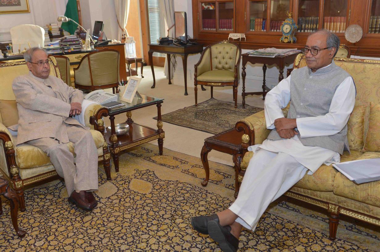 | Caption: | The President of India, Shri Pranab Mukherjee meeting with Shri Digvijay Singh, MP (RS), at Rashtrapati Bhavan on May 13, 2016. |