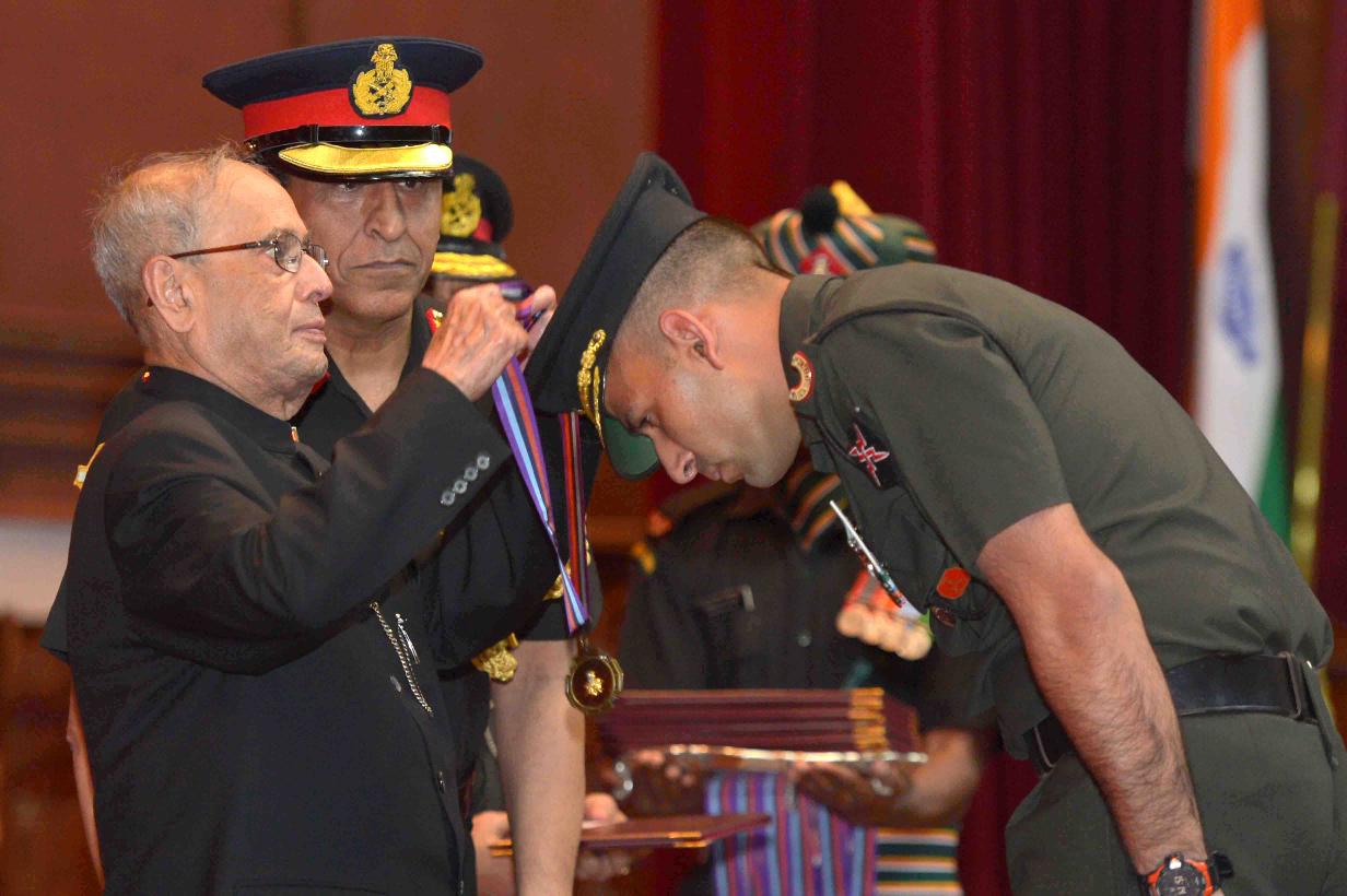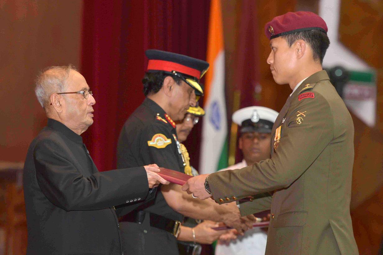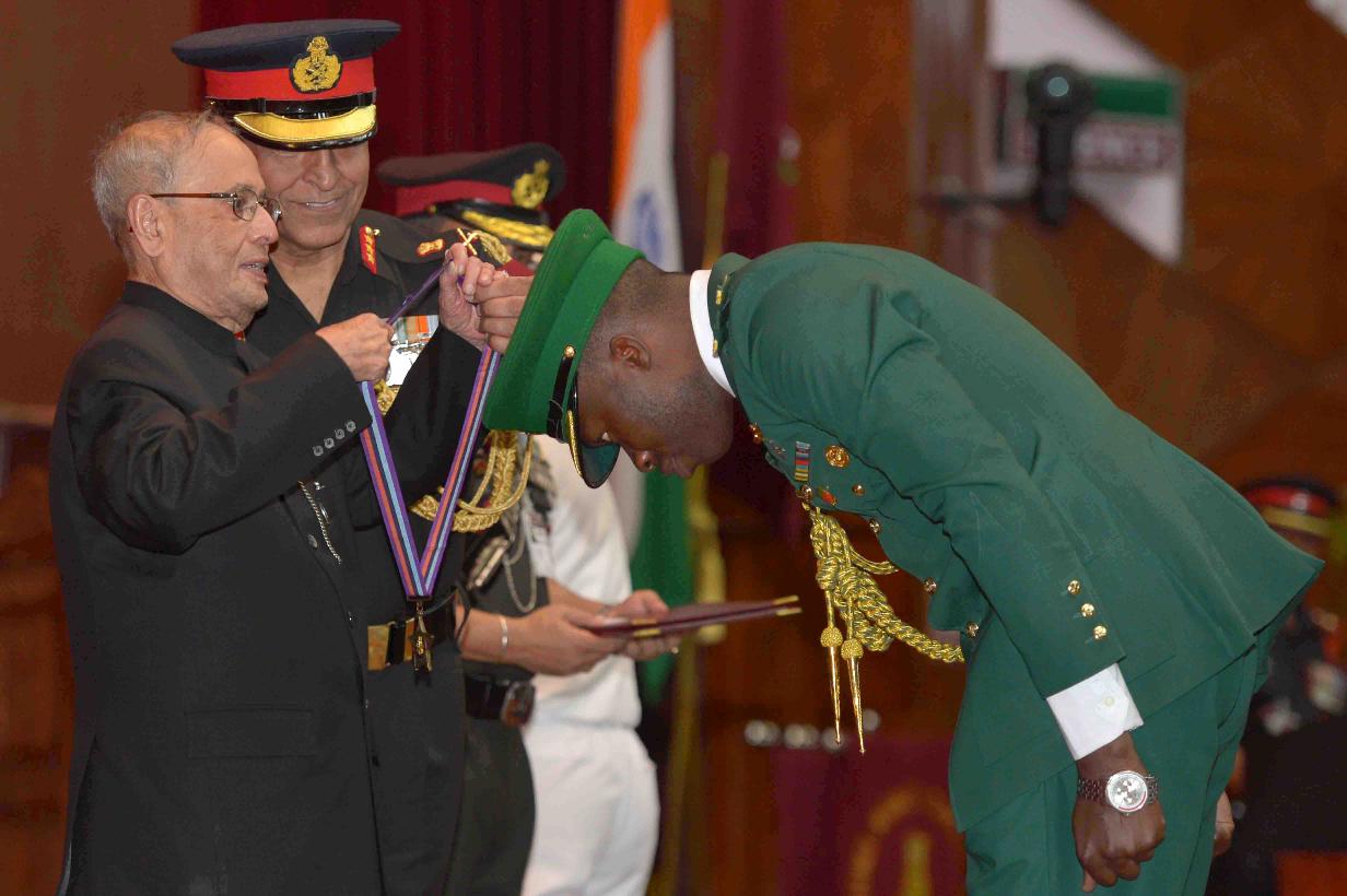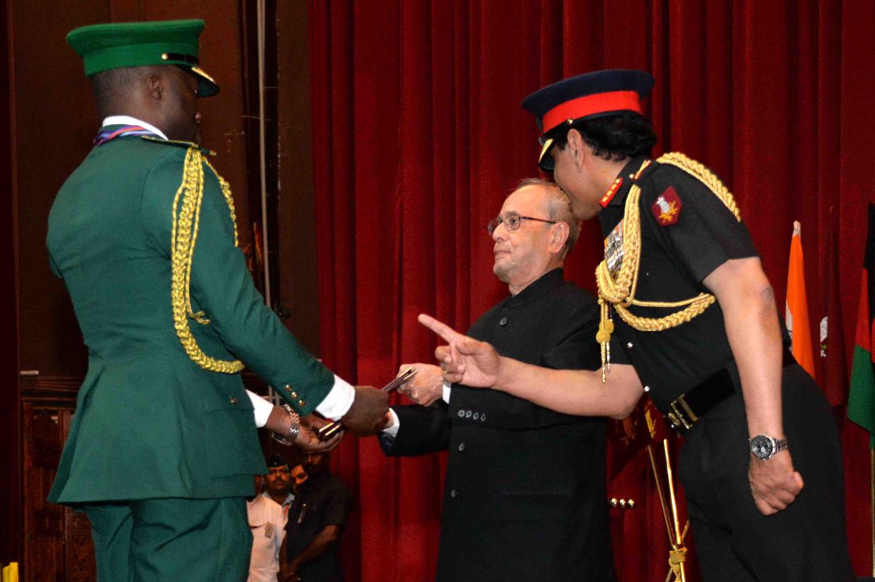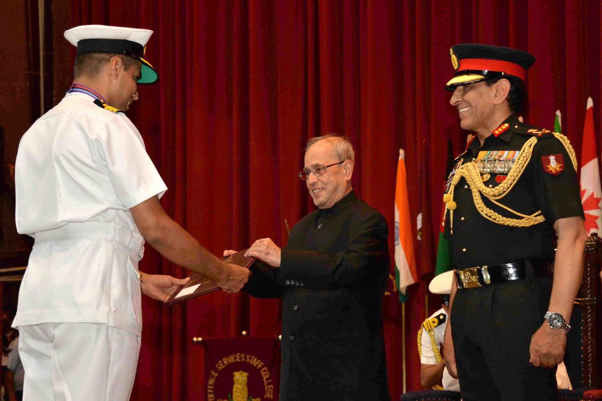 | Caption: | The President of India, Shri Pranab Mukherjee presenting the Medals to award winners and Parchments to the Foreign Officers, at the Convocation of the 71st Staff Course of Defence Services Staff College (DSSC), at Wellington, Nilgiris in Tamil Nadu on April 15, 2016. |