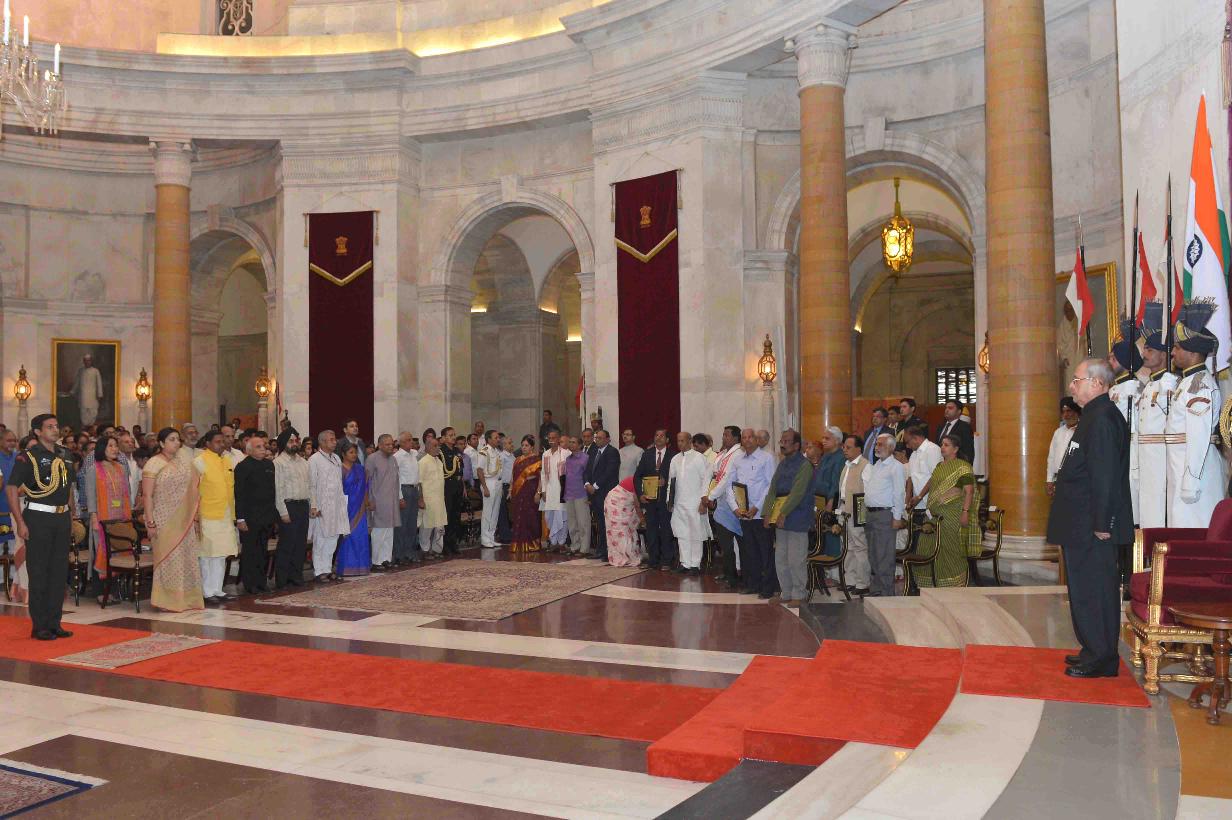 | Caption: | The President of India, Shri Pranab Mukherjee presenting the Hindi Sevi Samman Yojana Awards for the Years 2012, 2013 & 2014, at Rashtrapati Bhavan on April 19, 2016. |