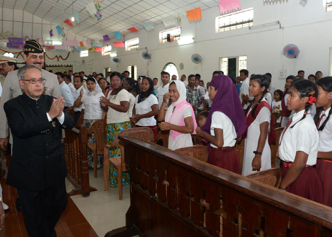 | Caption: | The President of India, Shri Pranab Mukherjee during visit to Mus Cathedral Church at Car Nicobar in Andaman and Nicobar on Jan 13, 2014 |