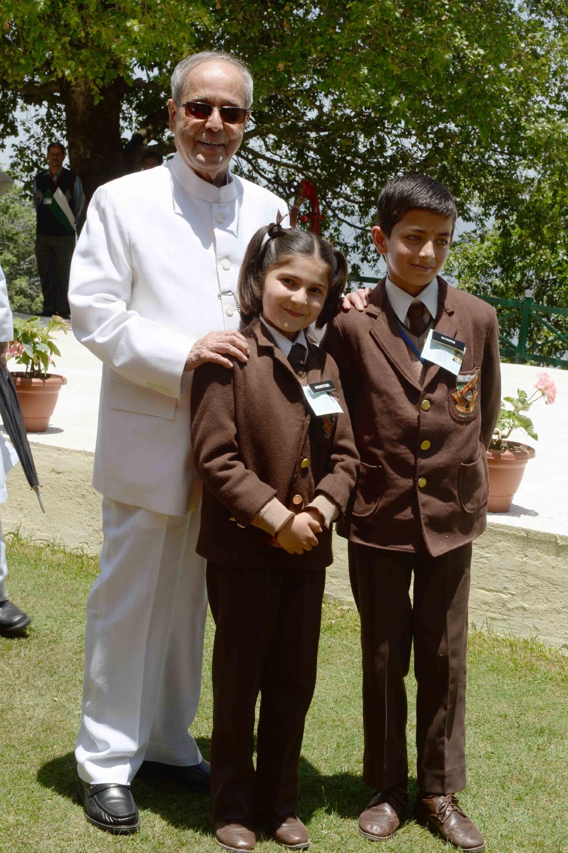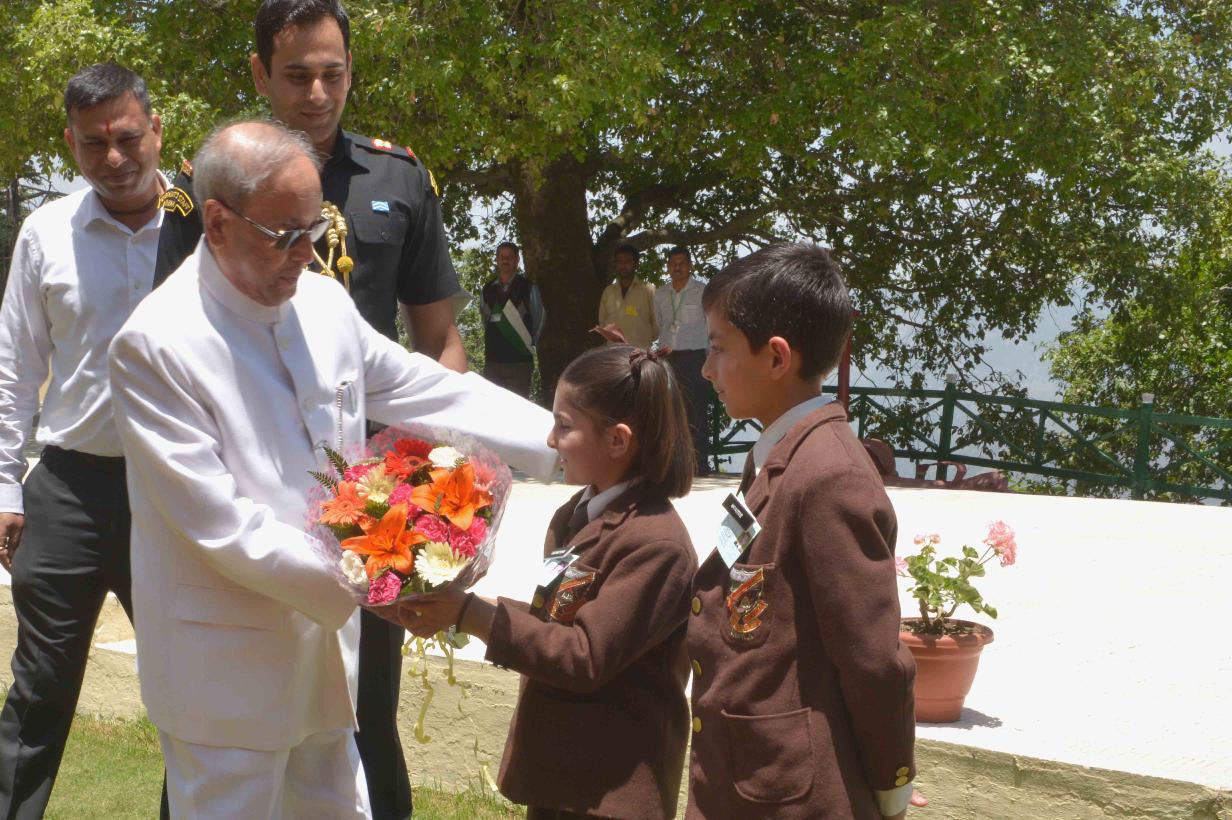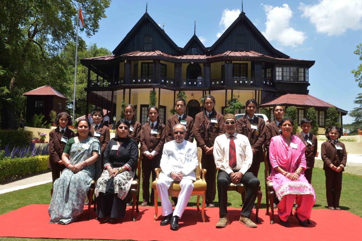 | Caption: | The President of India, Shri Pranab Mukherjee meeting with the Students & Staff from Himalayan International School at Retreat, Mashobra, Shimla on June 04, 2016. |