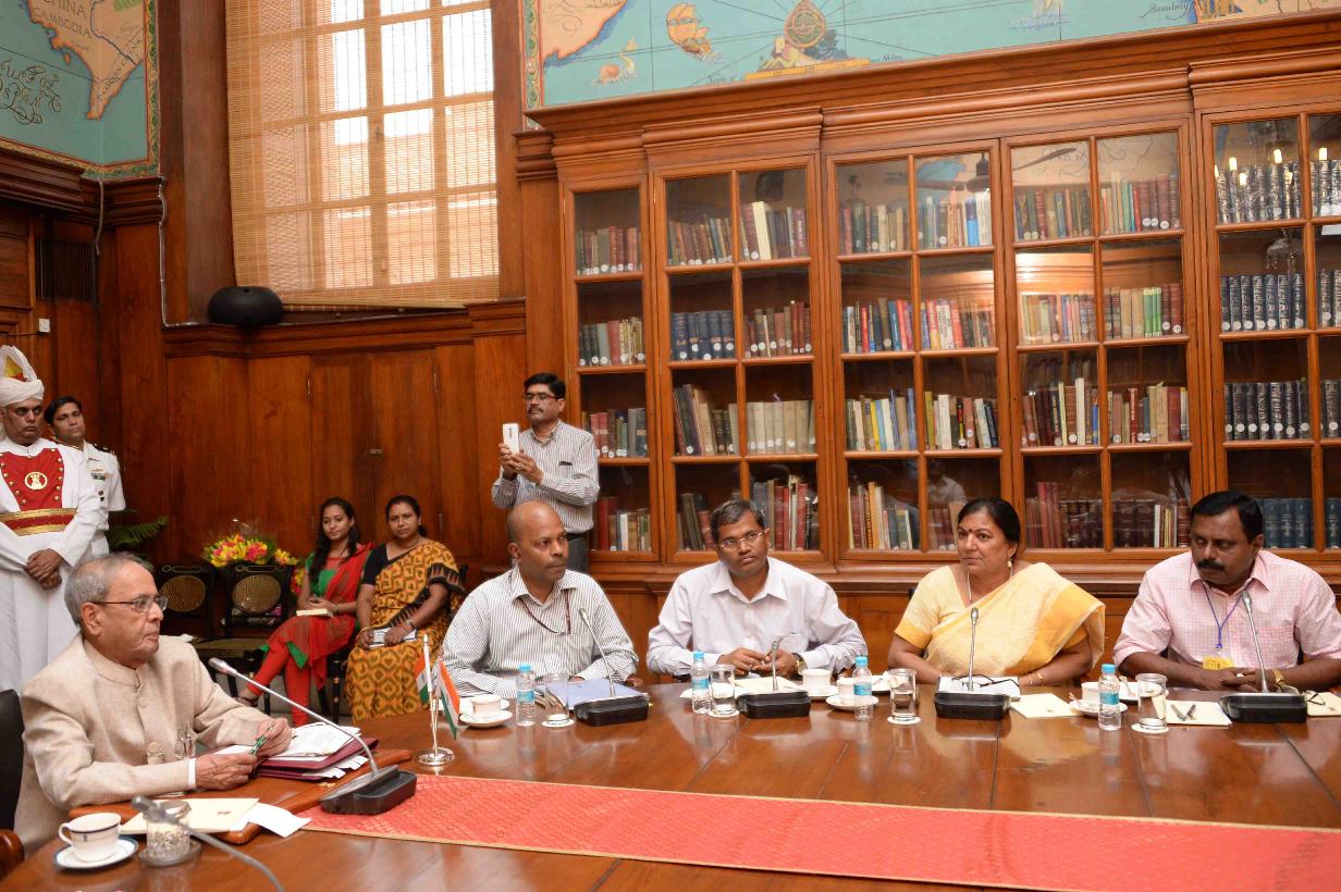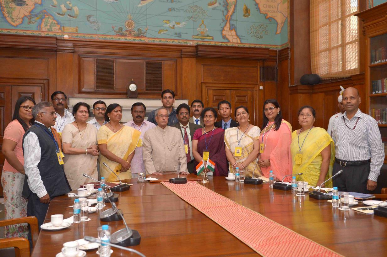 | Caption: | The President of India, Shri Pranab Mukherjee meeting with the teachers attending In-Residence Programme for Award Winning School Teachers from States/Union Territories along with coordinators from Dr. Rajendra Prasad Sarvodaya Vidyalaya, President s Estate, at Rashtrapati Bhavan on May 23, 2016. |