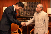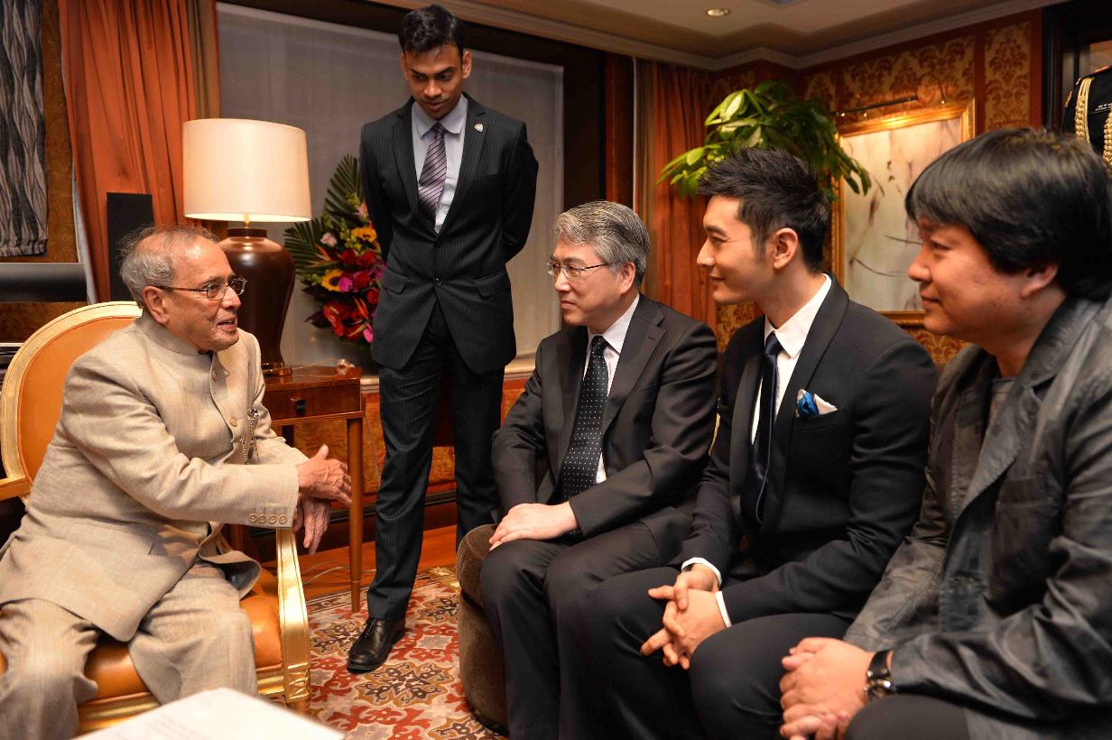 | Caption: | The famous Chinese actor, Mr. Huang Xiaoming calling on the President of India, Shri Pranab Mukherjee, at St Regis Hotel, in Beijing, People s Republic of China on May 25, 2016. |