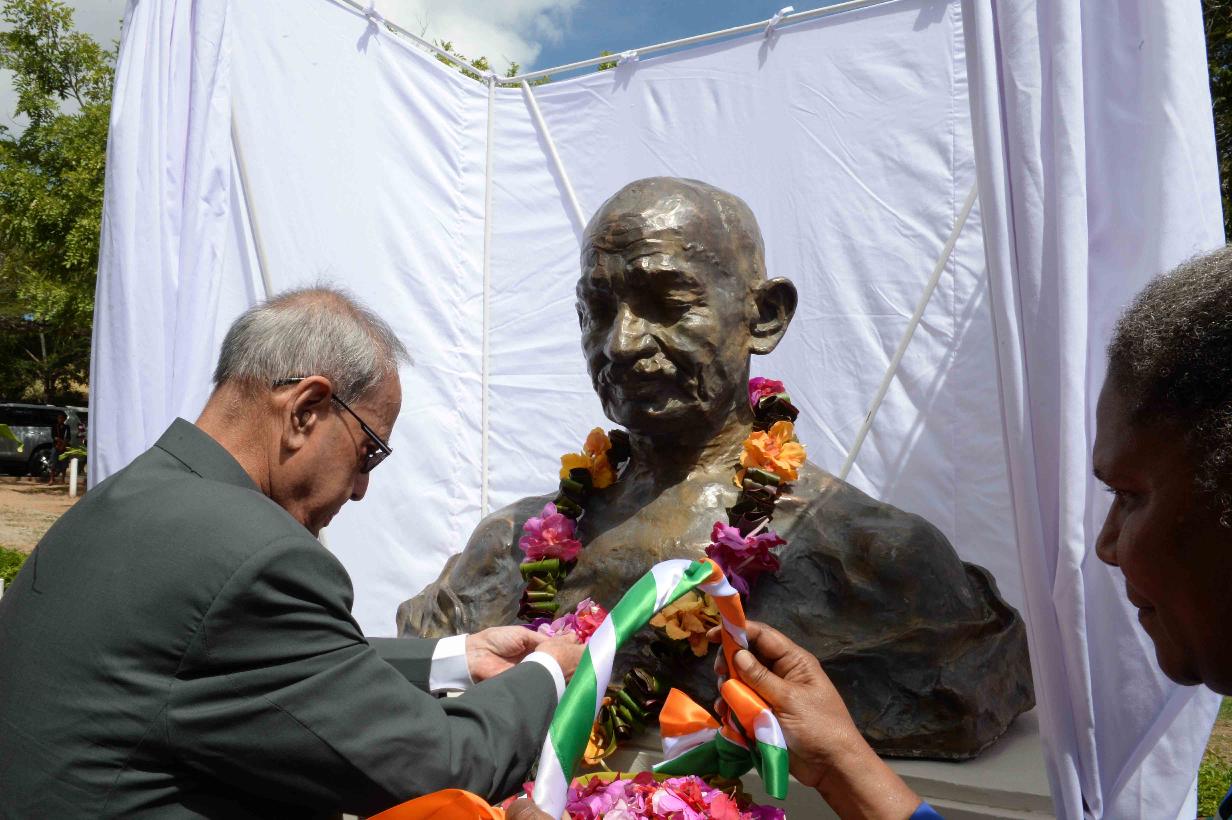 | Caption: | The President of India, Shri Pranab Mukherjee paying floral tributes at the statue of Mahatma Gandhi during his visit to University of Papa New Guinea (UPNG) at Port Moresby, in Papua New Guinea on April 29, 2016. |