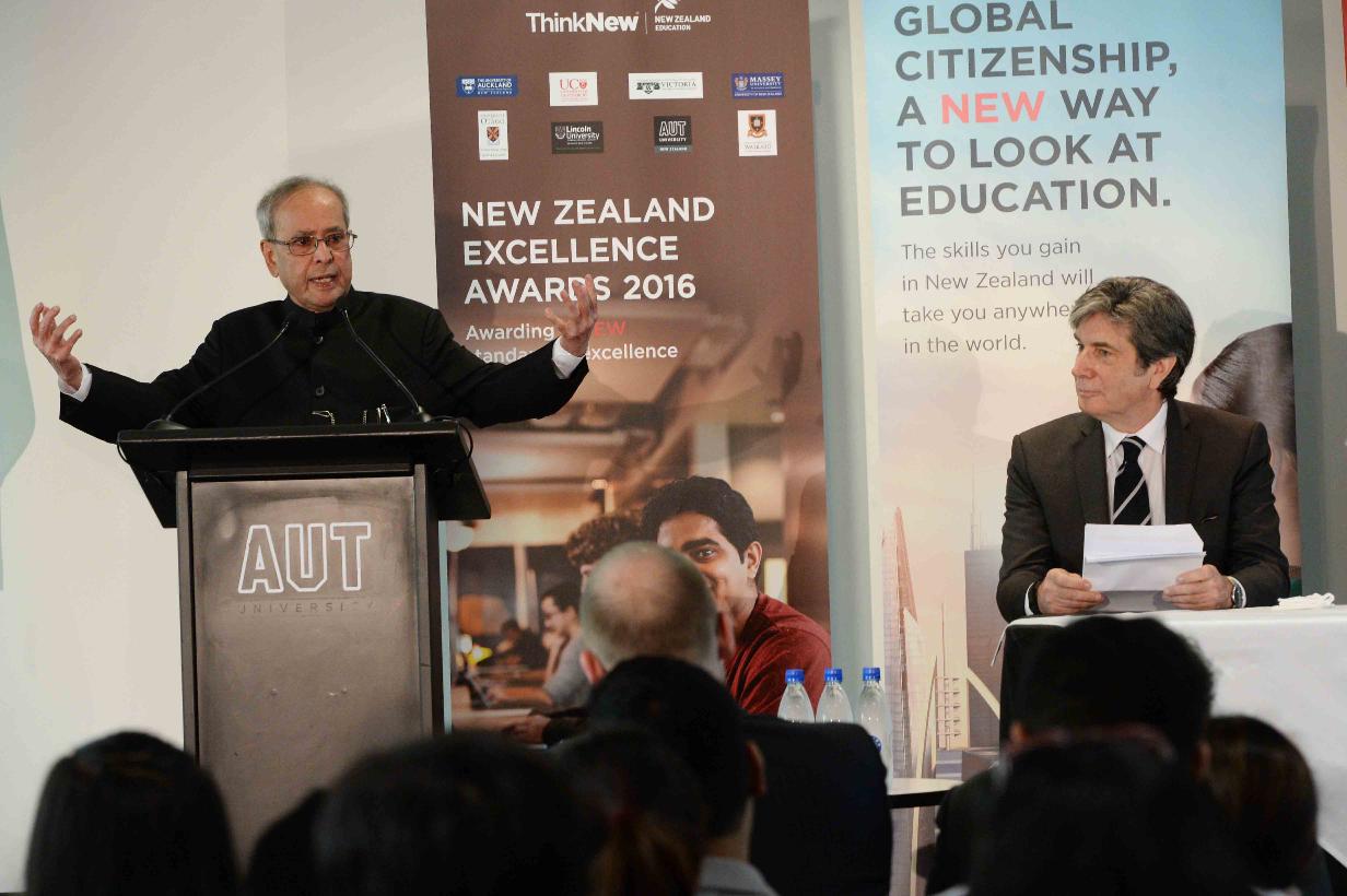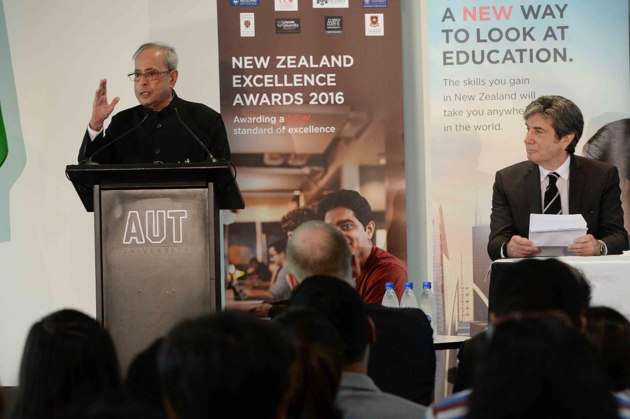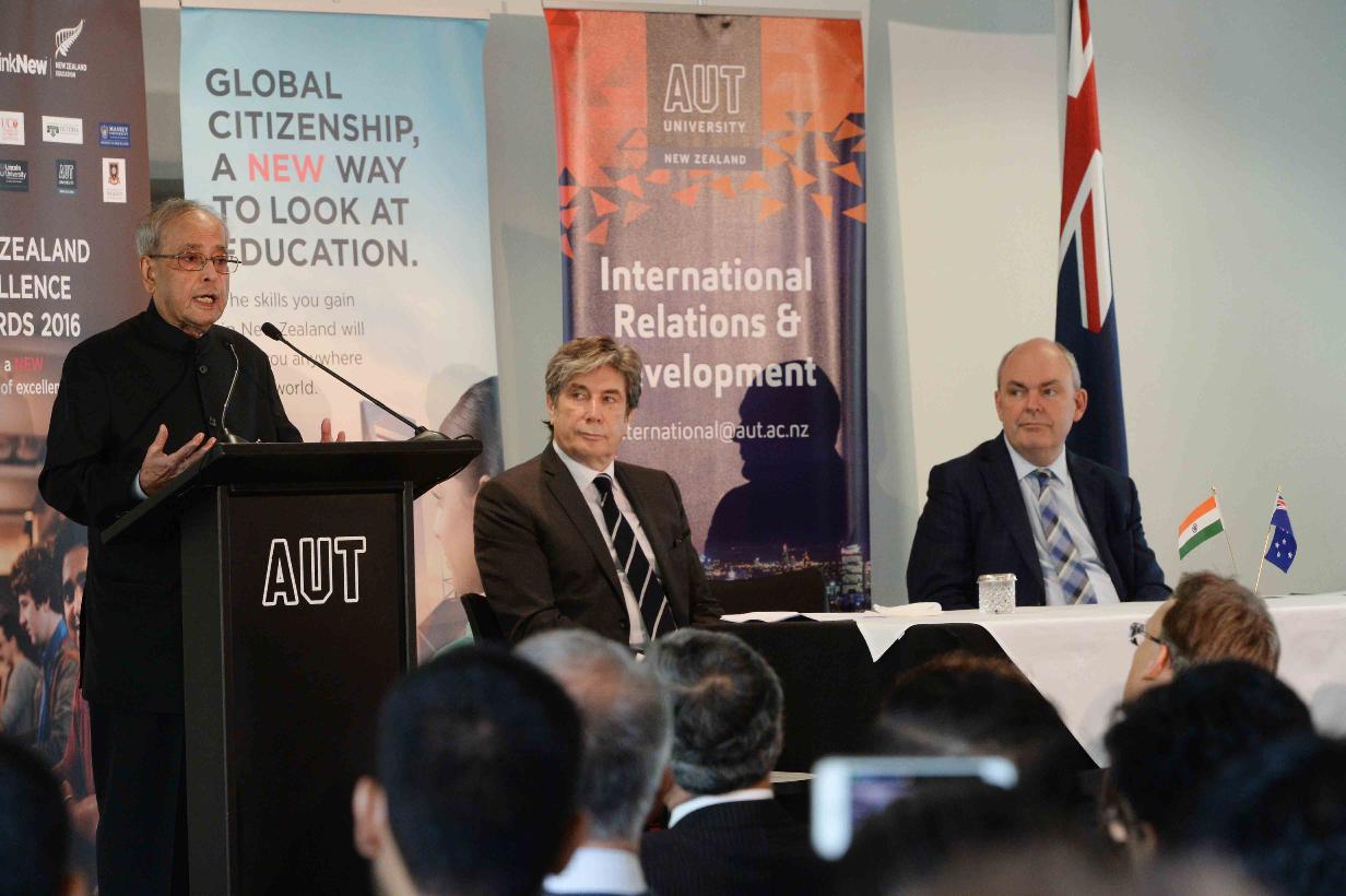 | Caption: | The President of India, Shri Pranab Mukherjee addressing at Auckland University of Technology (AUT), at Auckland, in New Zealand on May 02, 2016. |