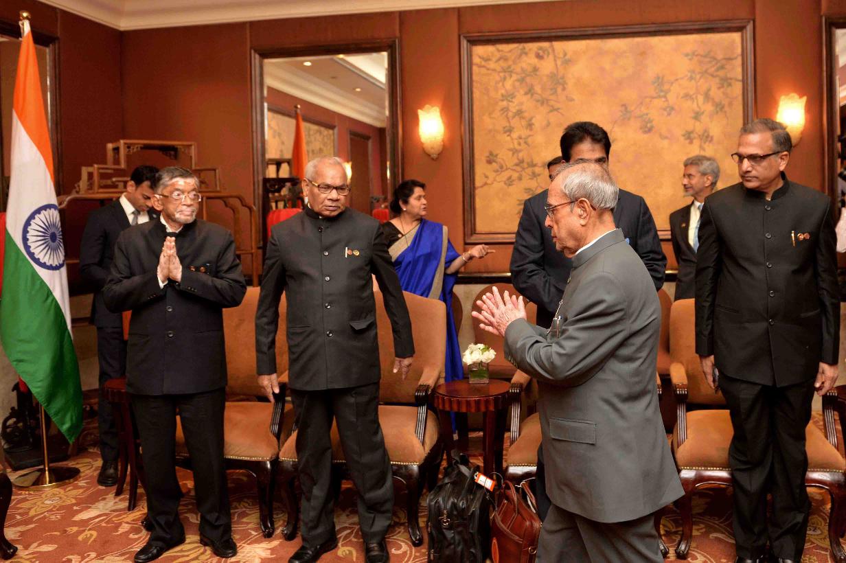 | Caption: | The State Councilor of the People's Republic of China, Mr. Yang Jiechi calling on the President of India, Shri Pranab Mukherjee, at Hotel St Regis, in Beijing, The People s Republic of China on May 27, 2016. |