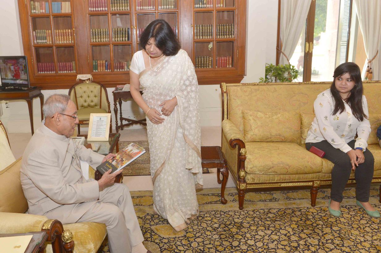 | Caption: | The President of India, Shri Pranab Mukherjee receiving a copy of the Book ''Kamadhenu: Cows of India'' from Ms. Rajni Sekhri Sibal, Additional Chief Secretary, Govt. of Haryana with others, at Rashtrapati Bhavan on May 30, 2016. |