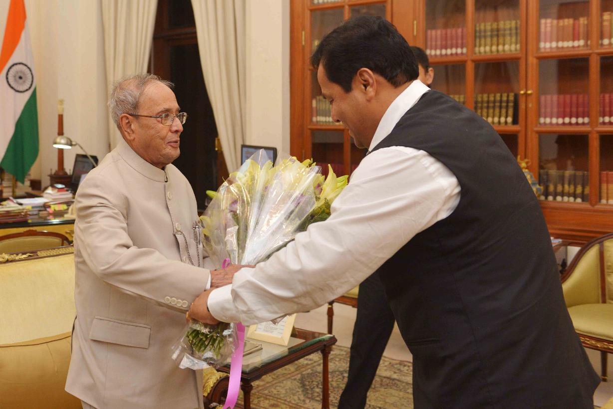 | Caption: | The Chief Minister of Assam, Shri Sarbananda Sonowal calling on the President of India, Shri Pranab Mukherjee, at Rashtrapati Bhavan on May 30, 2016. |