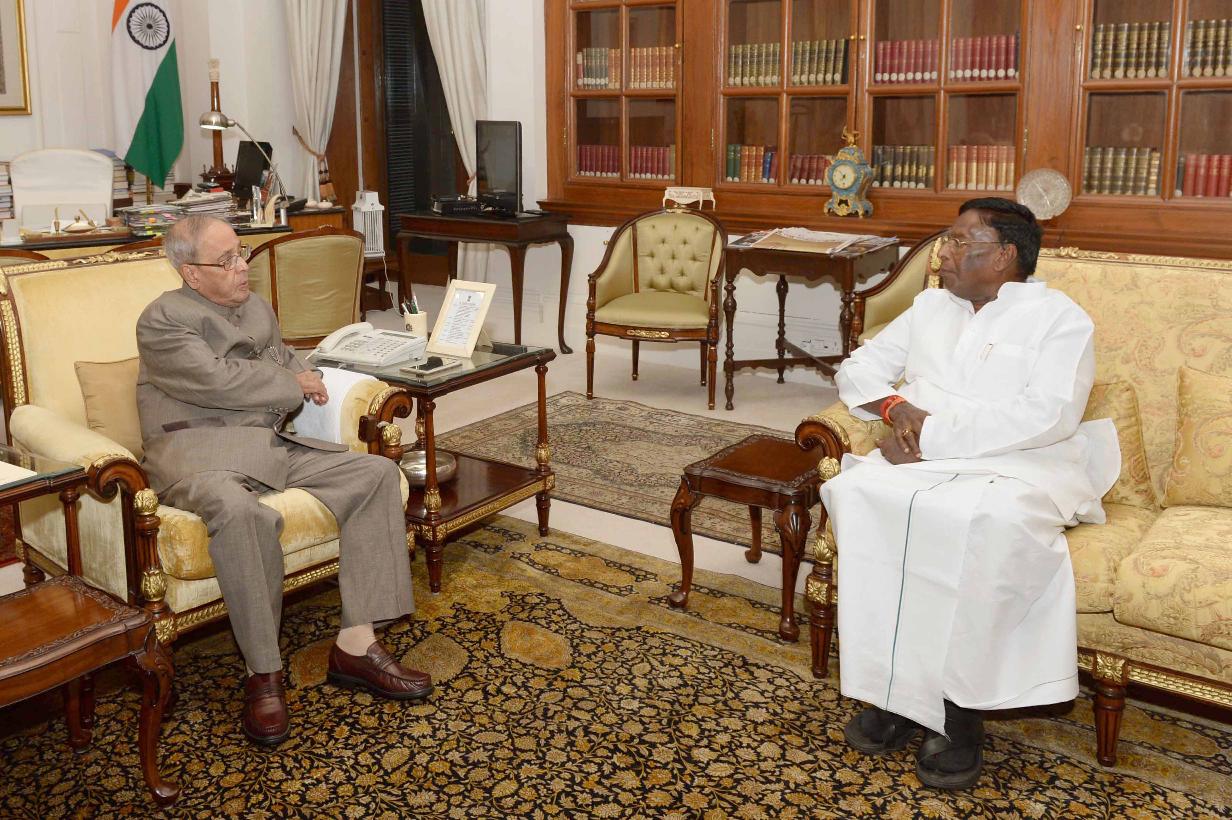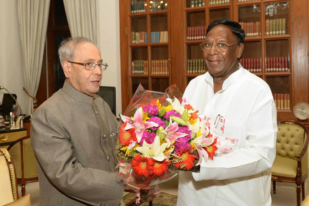 | Caption: | The President of India, Shri Pranab Mukherjee meeting with Shri V. Narayanasamy, at Rashtrapati Bhavan on June 01, 2016. |