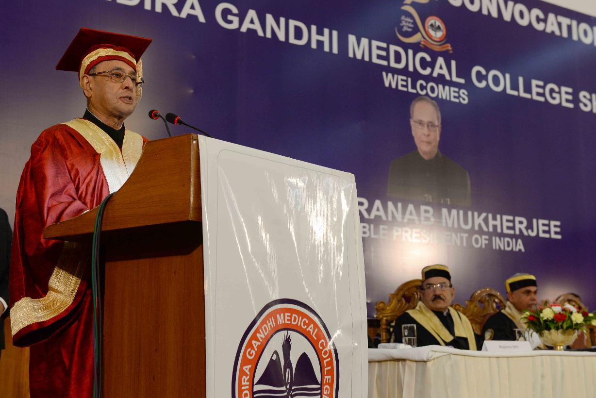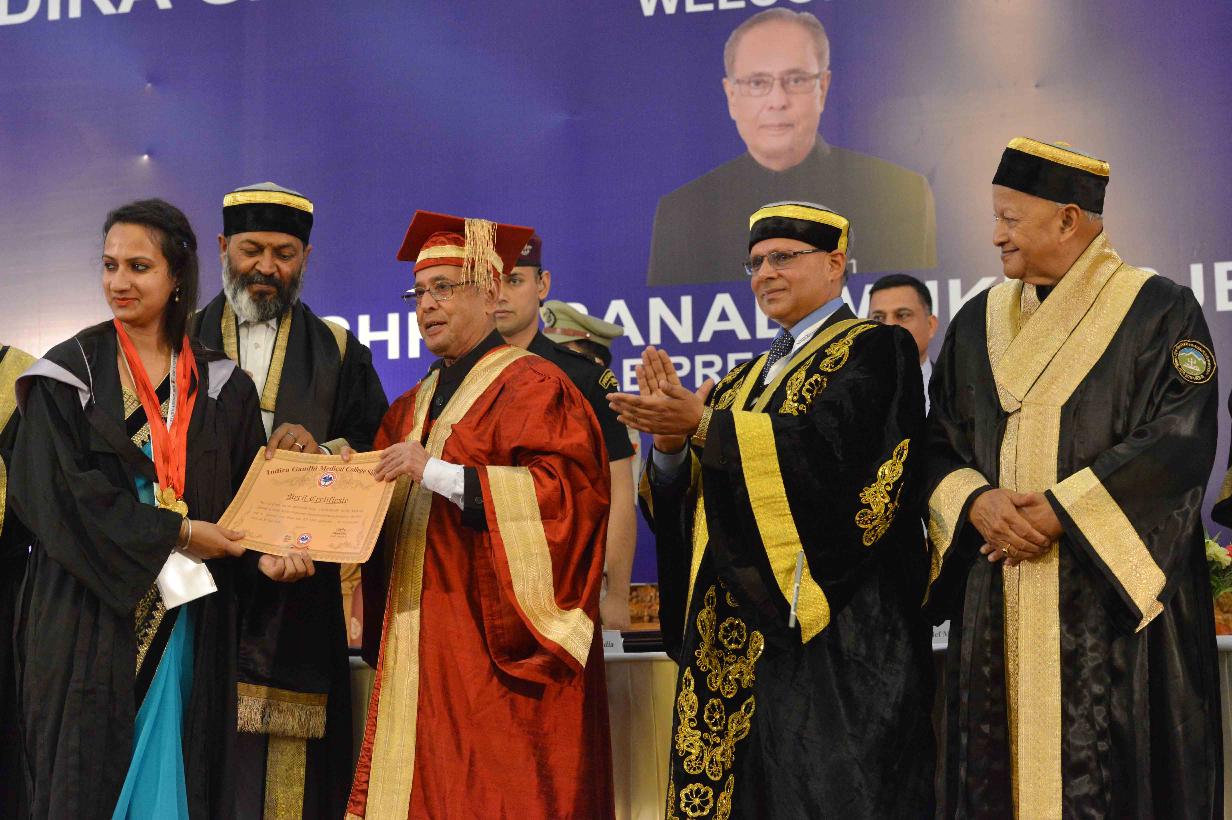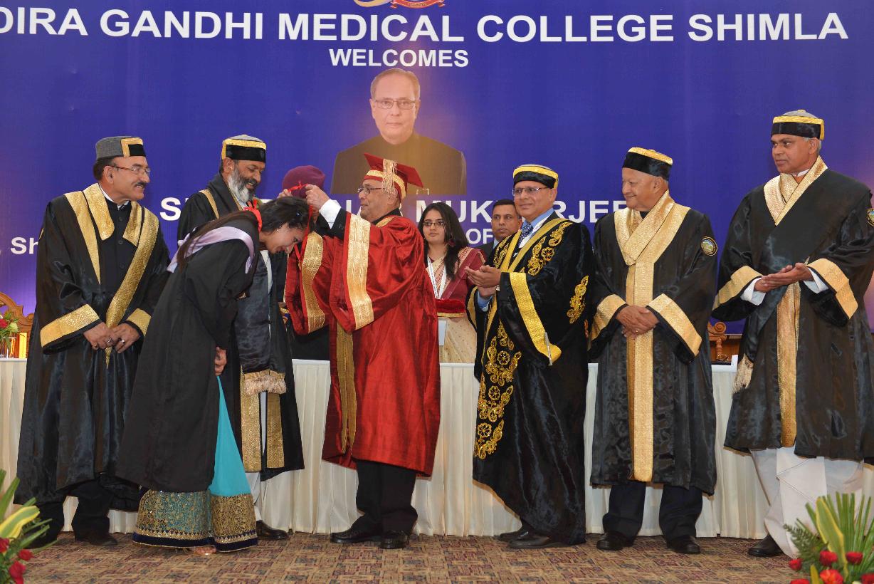 | Caption: | The President of India, Shri Pranab Mukherjee attending the Golden Jubilee Convocation of Indira Gandhi Medical College and presenting Merit Certificate and Medal to the students, at Shimla, Himachal Pradesh on June 03, 2016. |