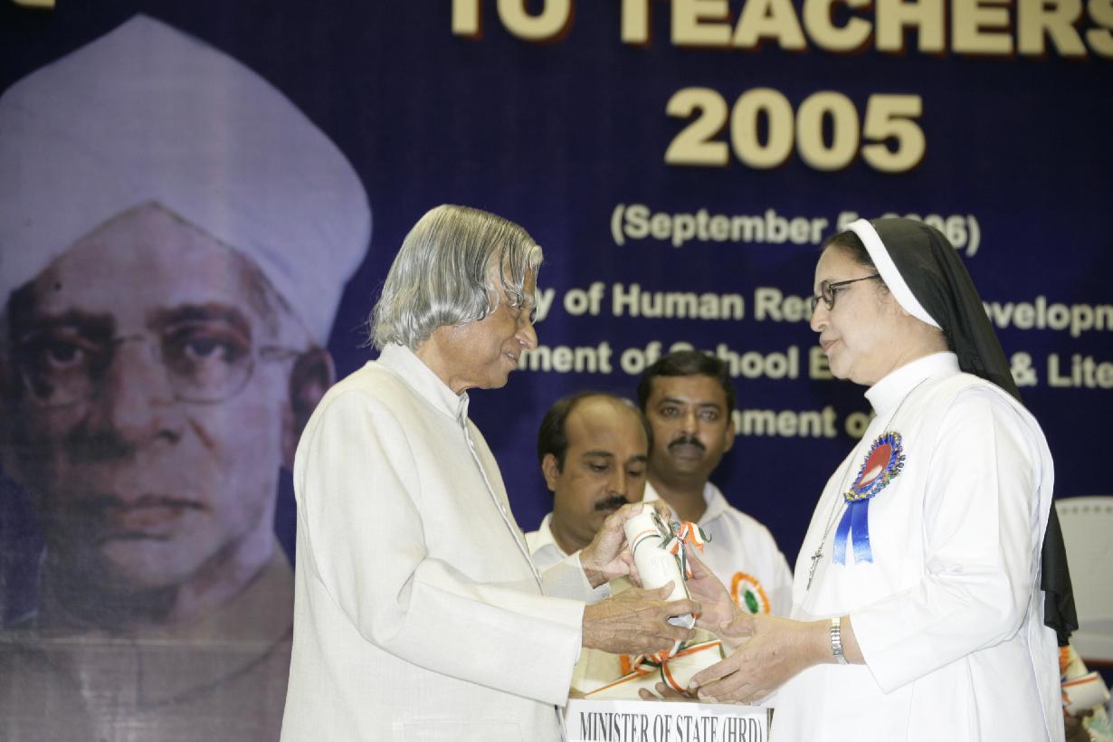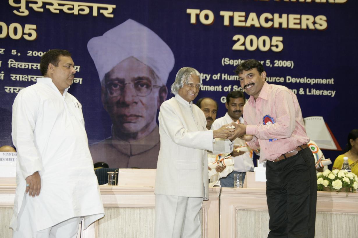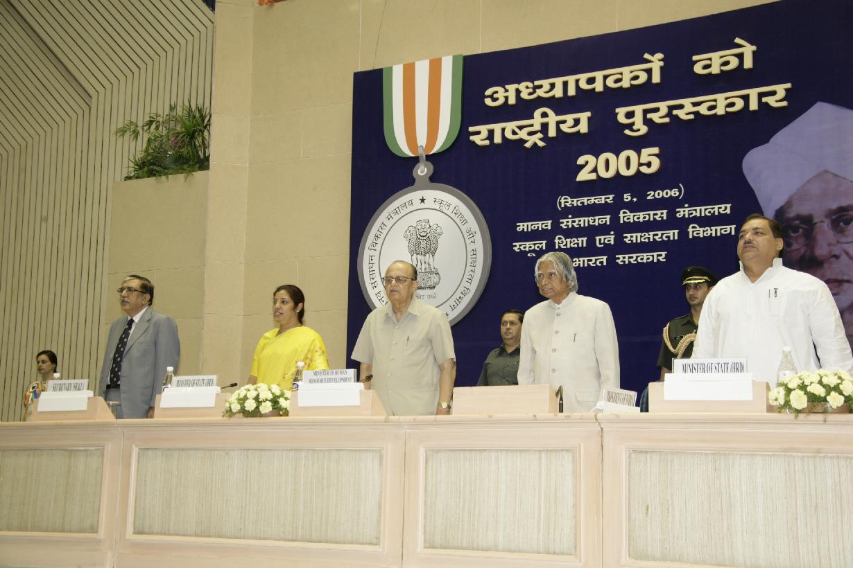 | Caption: | The President of India, Dr A P J Abdul Kalam presenting the National Teachers Awards at Vigyan Bhavan in New Delhi on Sep 05, 2006 |