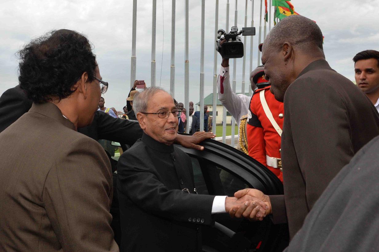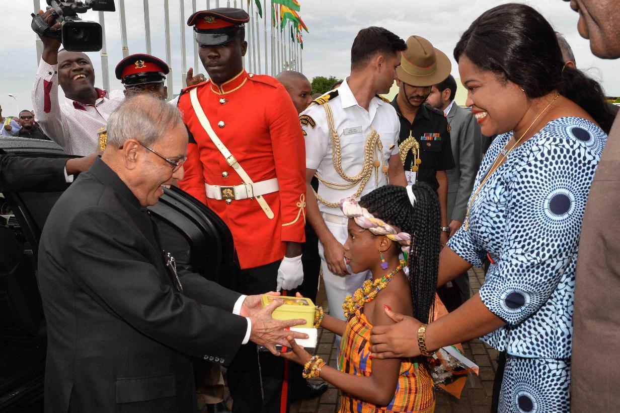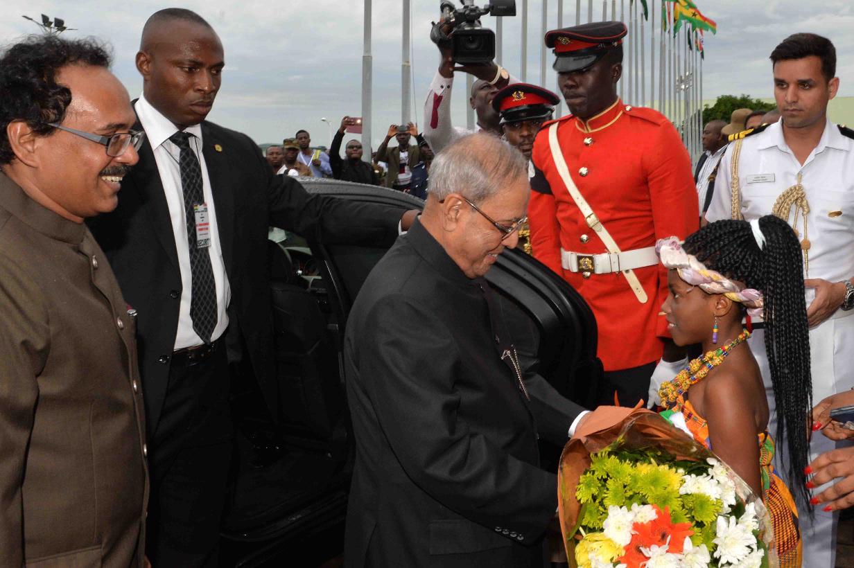 | Caption: | The President of India, Shri Pranab Mukherjee being received by the Vice President of the Republic of Ghana, H.E. Mr. Kwesi Bekoe Amissah-Arthur on his arrival, at Kotoka International Airport, in Accra, Ghana on June 12, 2016. |