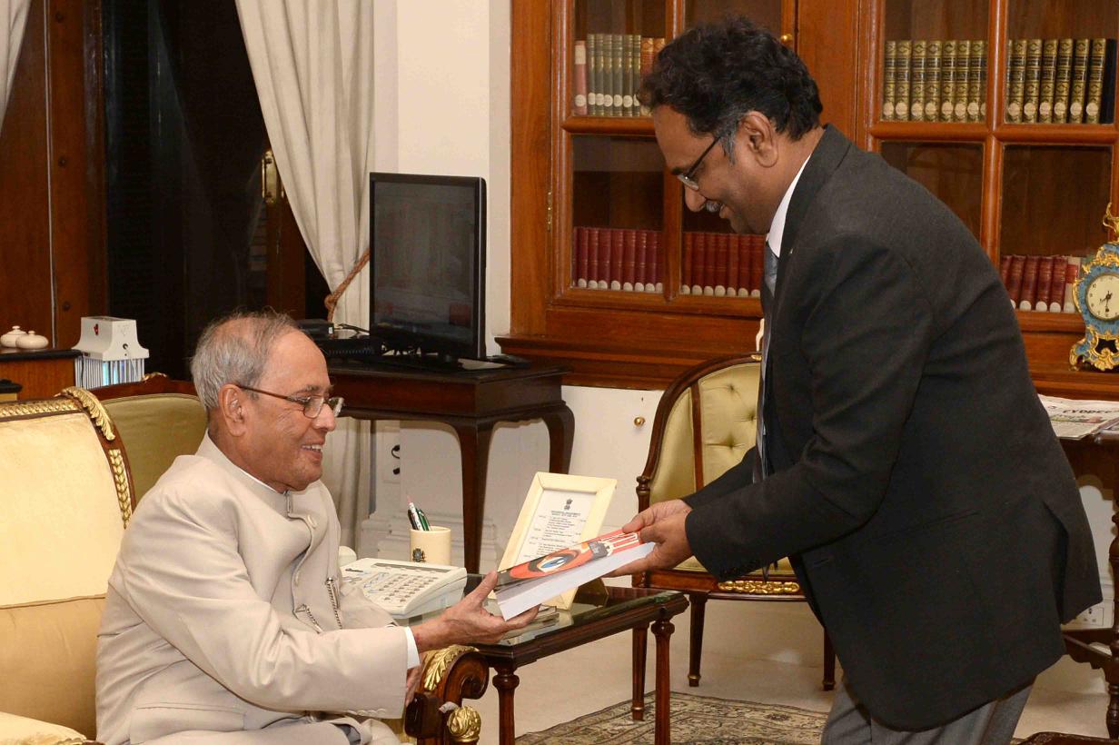 | Caption: | The President of India, Shri Pranab Mukherjee meeting with Shri M. Sridhar Acharyulu, Information Commissioner, Central Information Commission, at Rashtrapati Bhavan on June 20, 2016. |