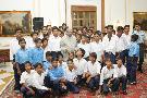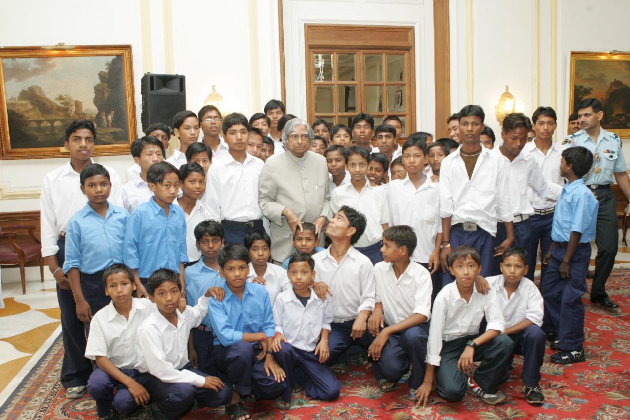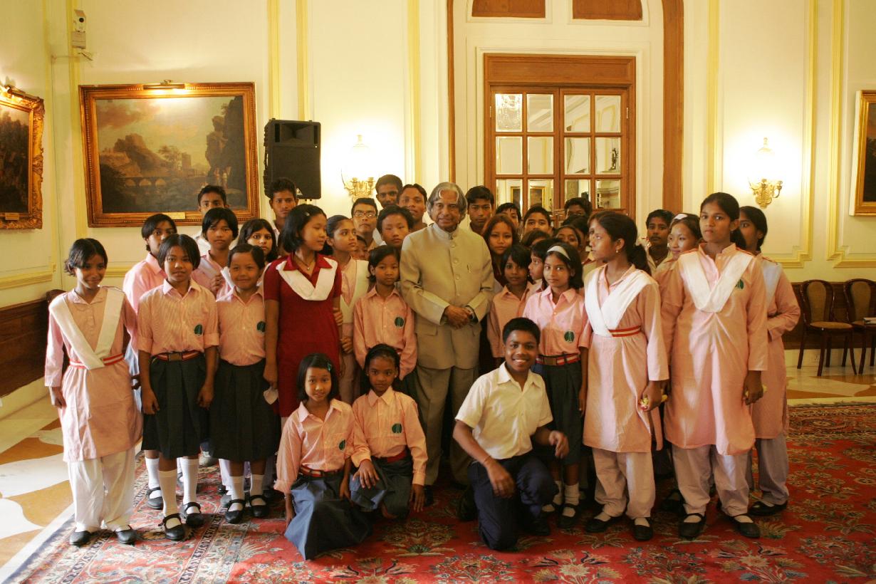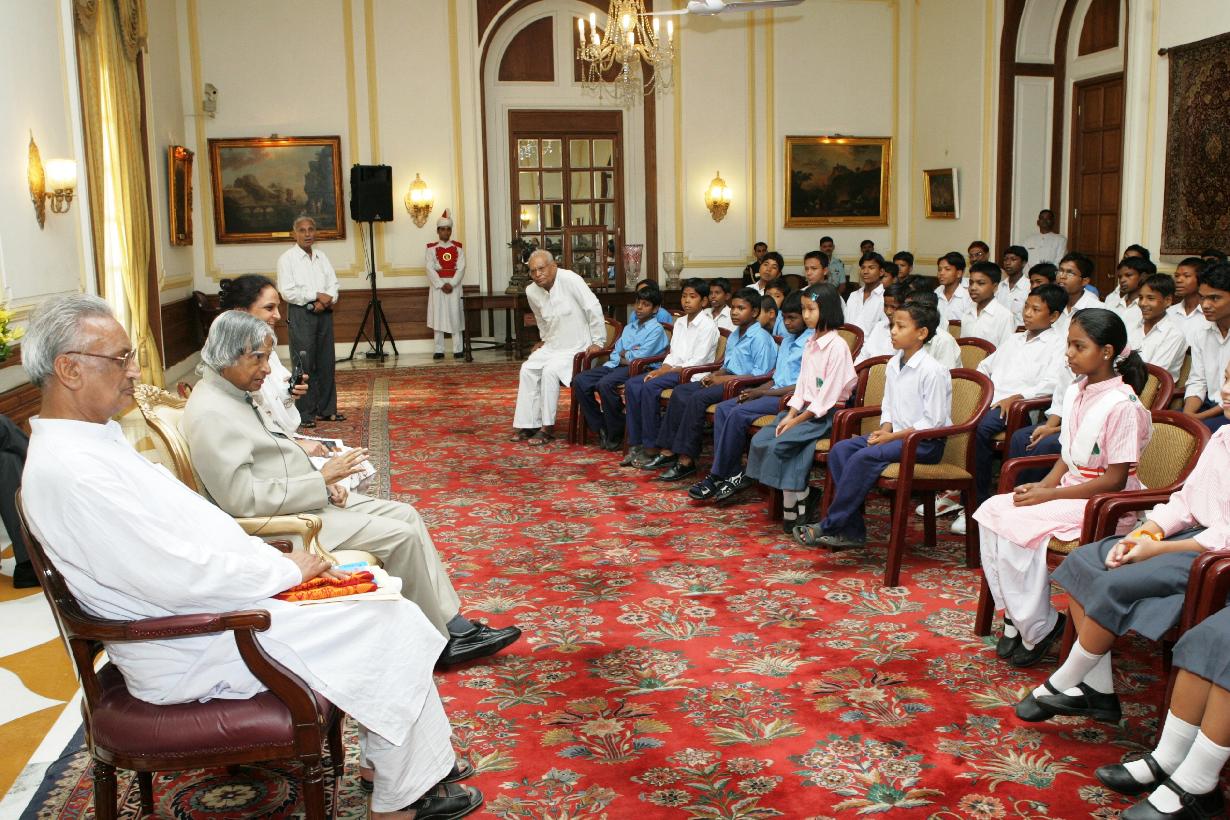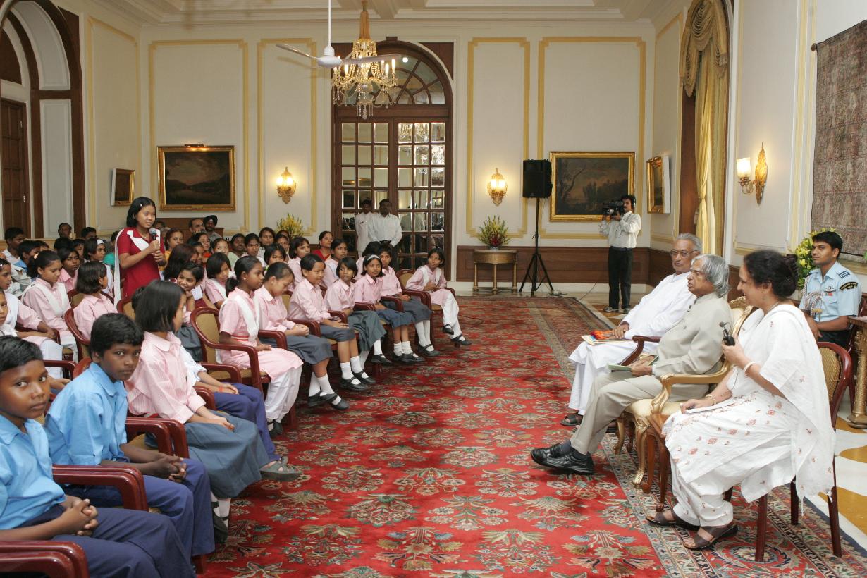 | Caption: | The Children from Katyayani Balika Ashram, Matrichhaya Bal Sadan and Tribl Boys' Hostel Run by the Bharatiya Adim Jati Sevak Sangh, Delhi calling on the President of India, Dr A P J Abdul Kalam at the Yellow Drawing Room of Rashtrapati Bhavan in New Delhi on July 03, 2007 |
