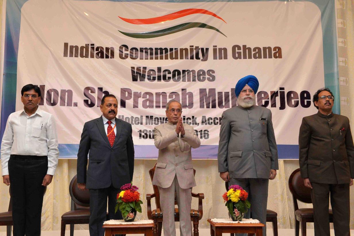 | Caption: | The President of India, Shri Pranab Mukherjee attending the Indian Community Reception, at Hotel Movenpick, in Accra, Ghana on June 13, 2016. |