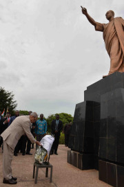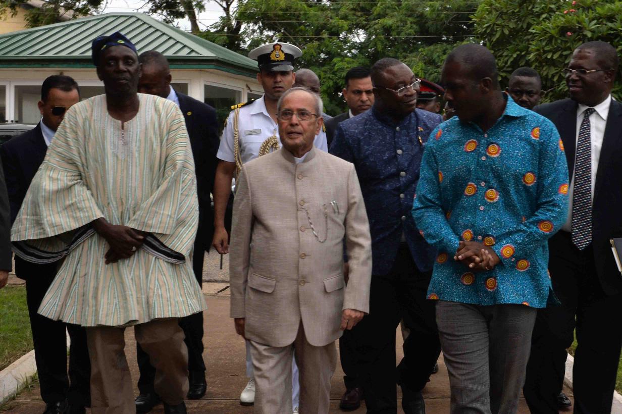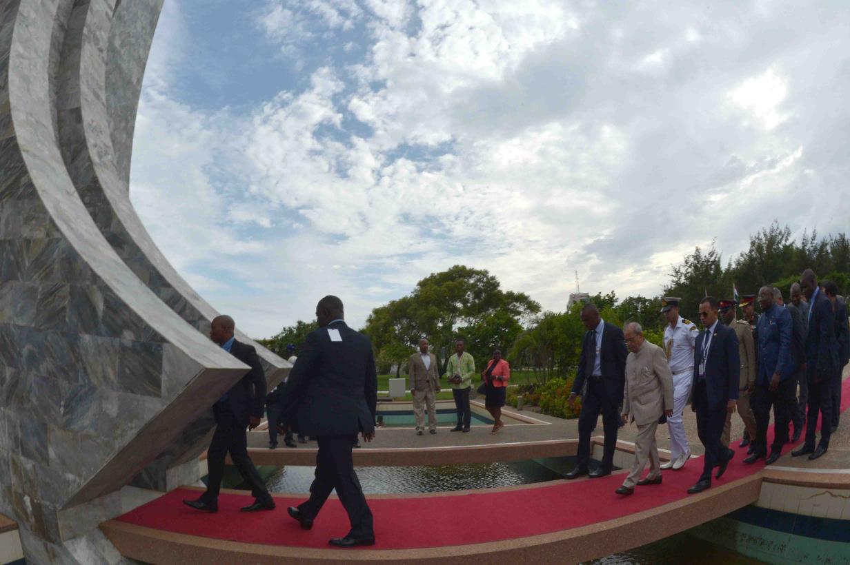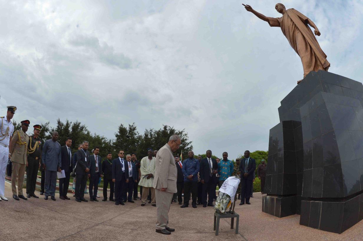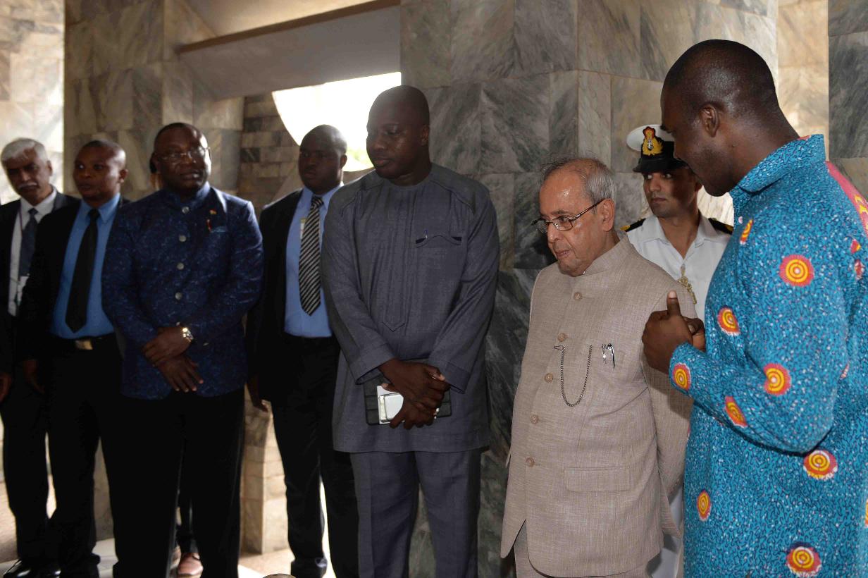 | Caption: | The President of India, Shri Pranab Mukherjee laying wreath at the statue of Dr. Kwame Nkrumah, the first President of the Republic of Ghana, during his visit at Kwame Nkrumah Mausoleum, in Accra, Ghana on June 13, 2016. |