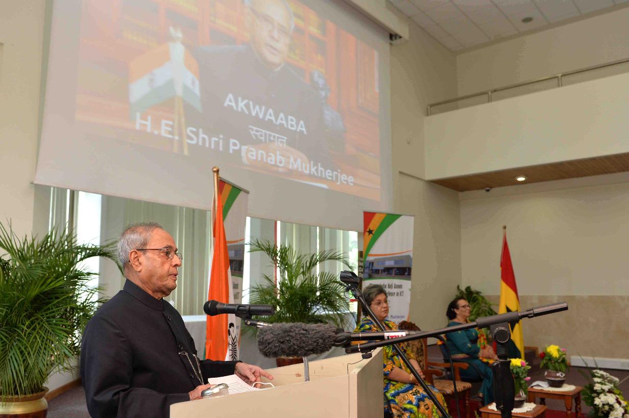 | Caption: | The President of India, Shri Pranab Mukherjee addressing the students and faculty members of India-Ghana Kofi Annan Centre for Excellence, in Accra, Ghana on June 14, 2016. |