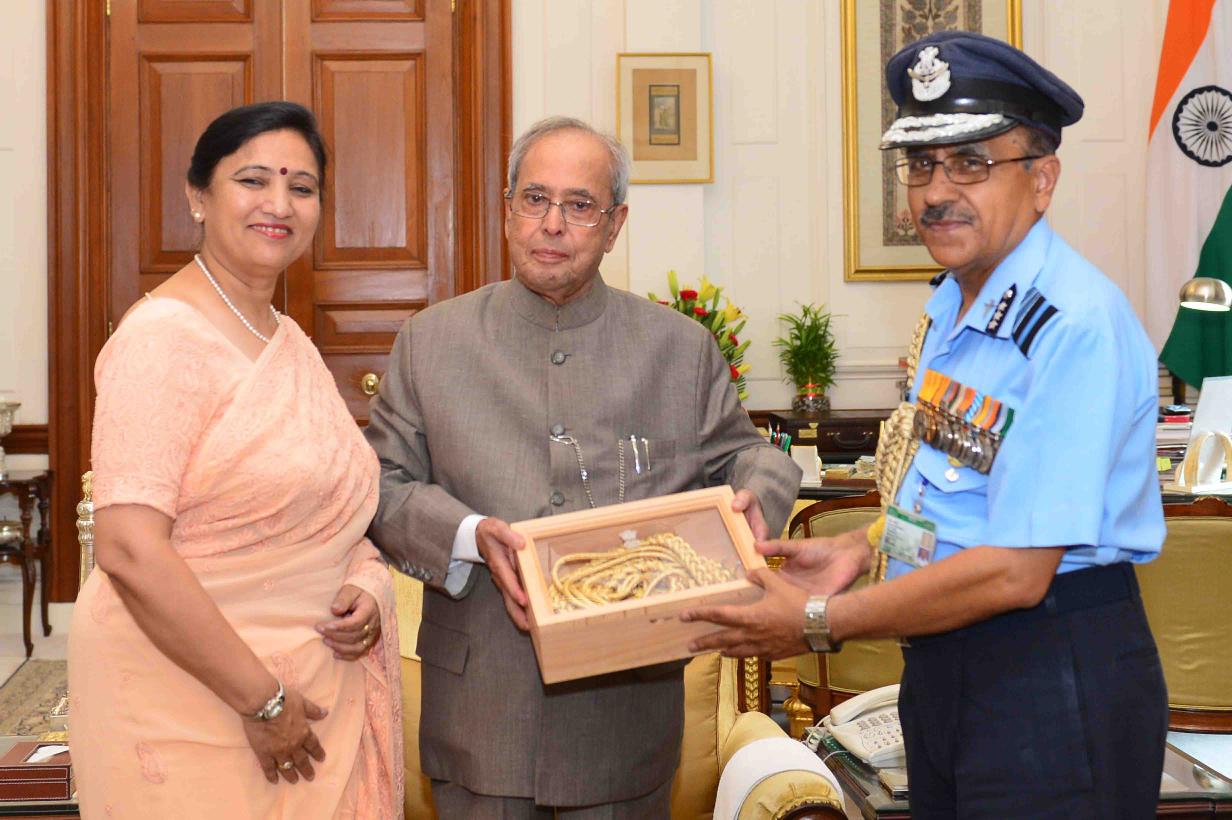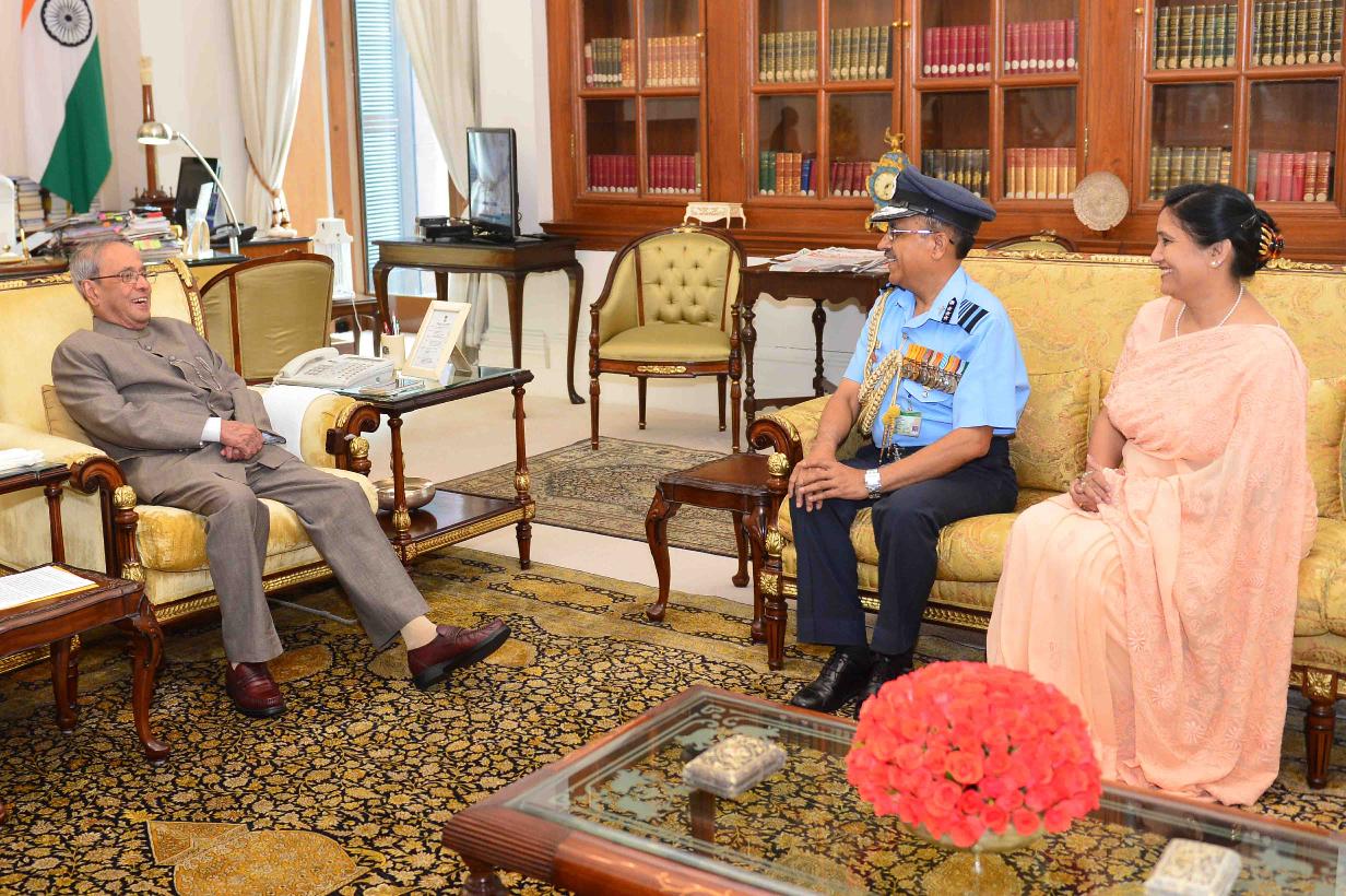 | Caption: | The President of India, Shri Pranab Mukherjee meeting with Air Marshal Ranjan Chaudhry, AVSM, VSM, PHS, DGMS (AIR) & Hony Surgeon to the President alongwith Smt. Raksha Chaudhry, at Rashtrapati Bhavan on June 21, 2016. |