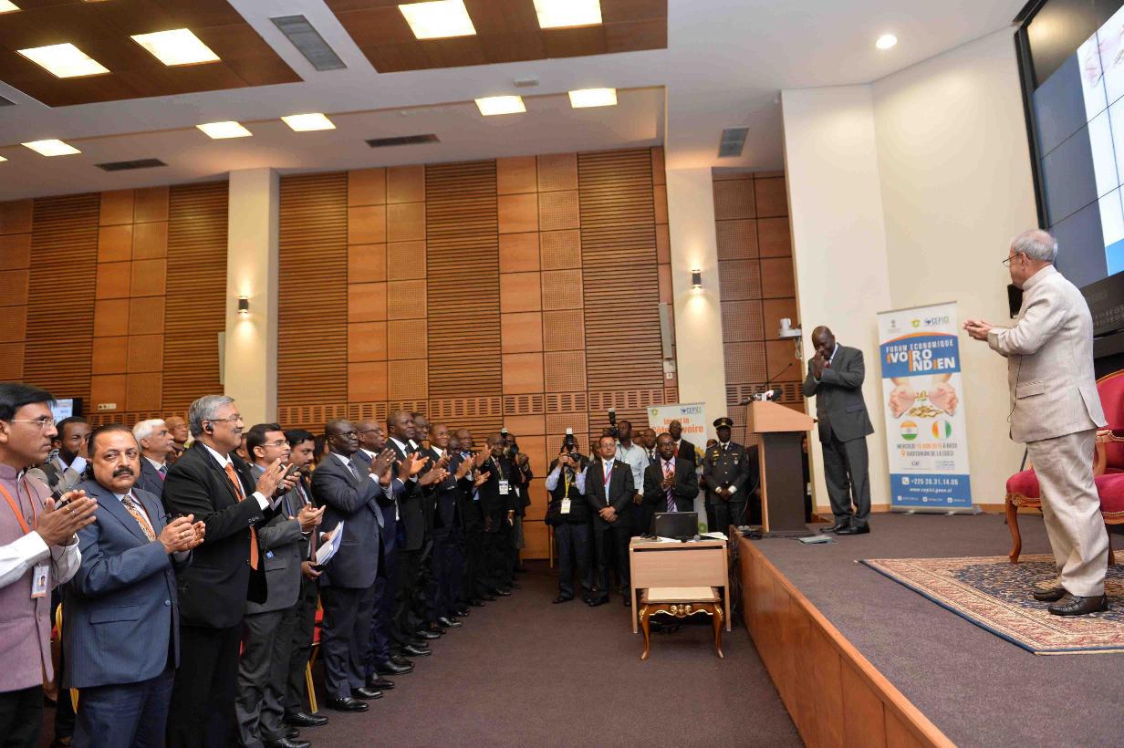 | Caption: | The President of India, Shri Pranab Mukherjee attending the Business Forum Meeting and witnessing the exchange of MOU between CII & CEPICI at Federation of Ivorian Business Enterprises, in Abidjan, Republic of Cote d lvoire on June 15, 2016. |