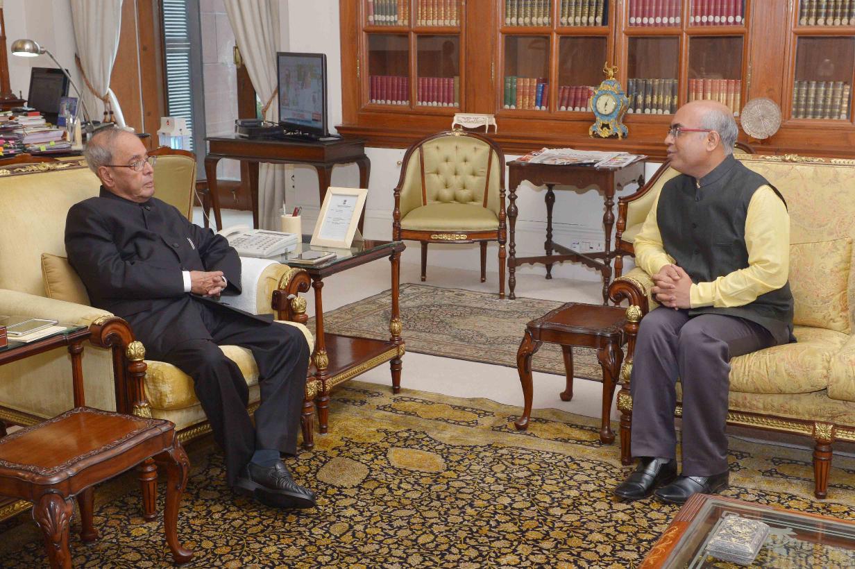 | Caption: | The President of India, Shri Pranab Mukherjee meeting with Shri Akhilesh Mishra, High Commissioner-designate of India to Maldives, at Rashtrapati Bhavan on June 27, 2016. |