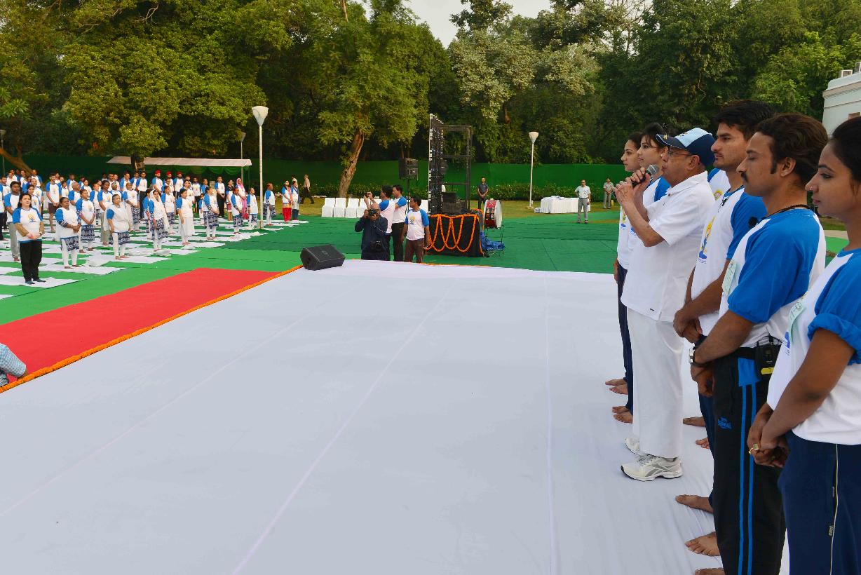 | Caption: | The President of India, Shri Pranab Mukherjee inaugurating the 2nd International Day of Yoga at Rashtrapati Bhavan on June 21, 2016. |
