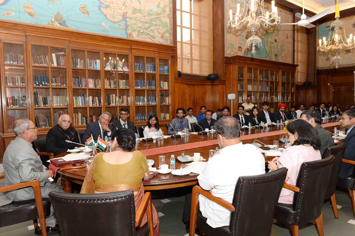 | Caption: | The President of India, Shri Pranab Mukherjee meeting with the students of IITs, IISc-B and IISERs attending In-Residence Programme, at Rashtrapati Bhavan on June 23, 2016. |