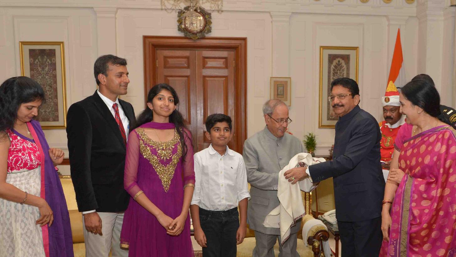 | Caption: | The President of India, Shri Pranab Mukherjee meeting with Shri C. Vidyasagar Rao, Governor of Maharashtra alongwith his family members, at Rashtrapati Bhavan on June 23, 2016. |