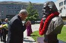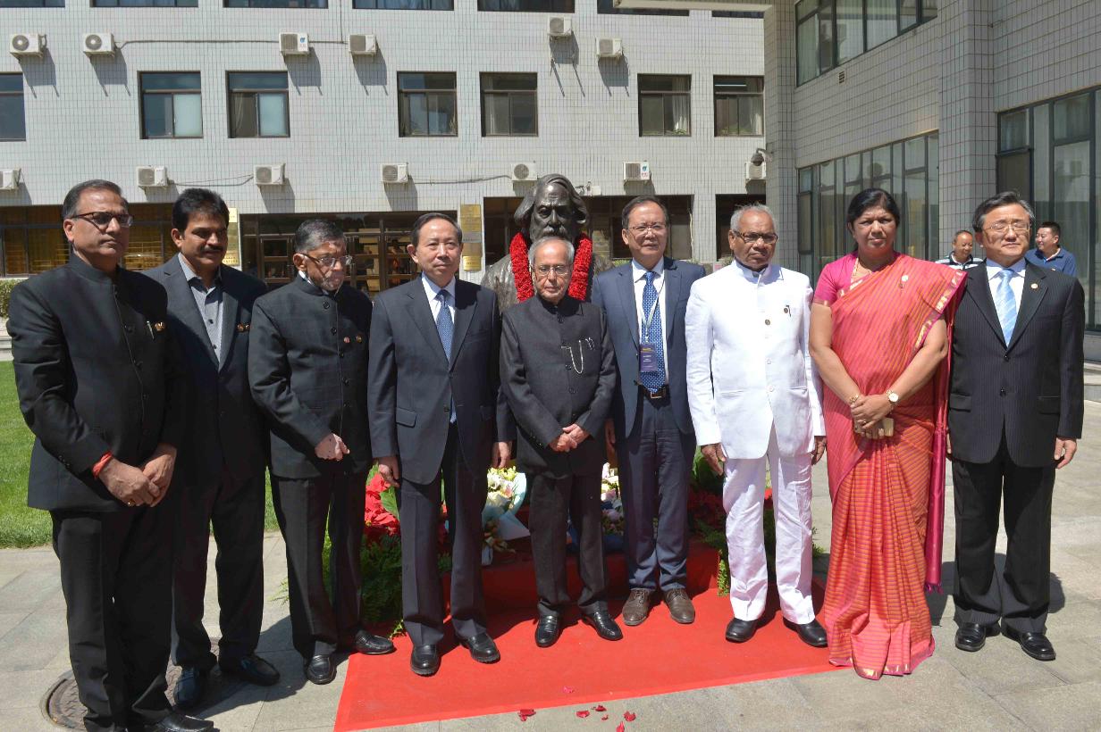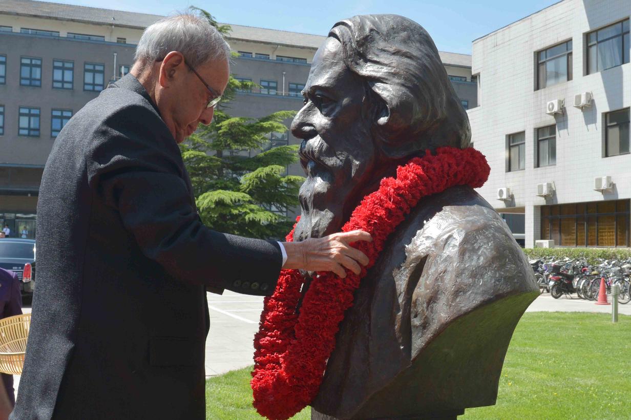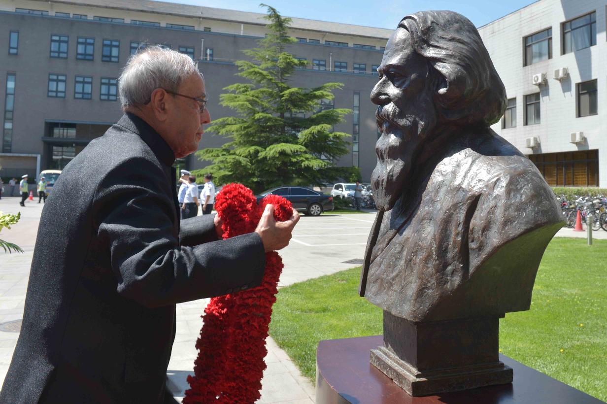 | Caption: | The President of India, Shri Pranab Mukherjee garlanding at the bust of Rabindranath Tagore, at Peking University, in Beijing, People s Republic of China on May 26, 2016. |