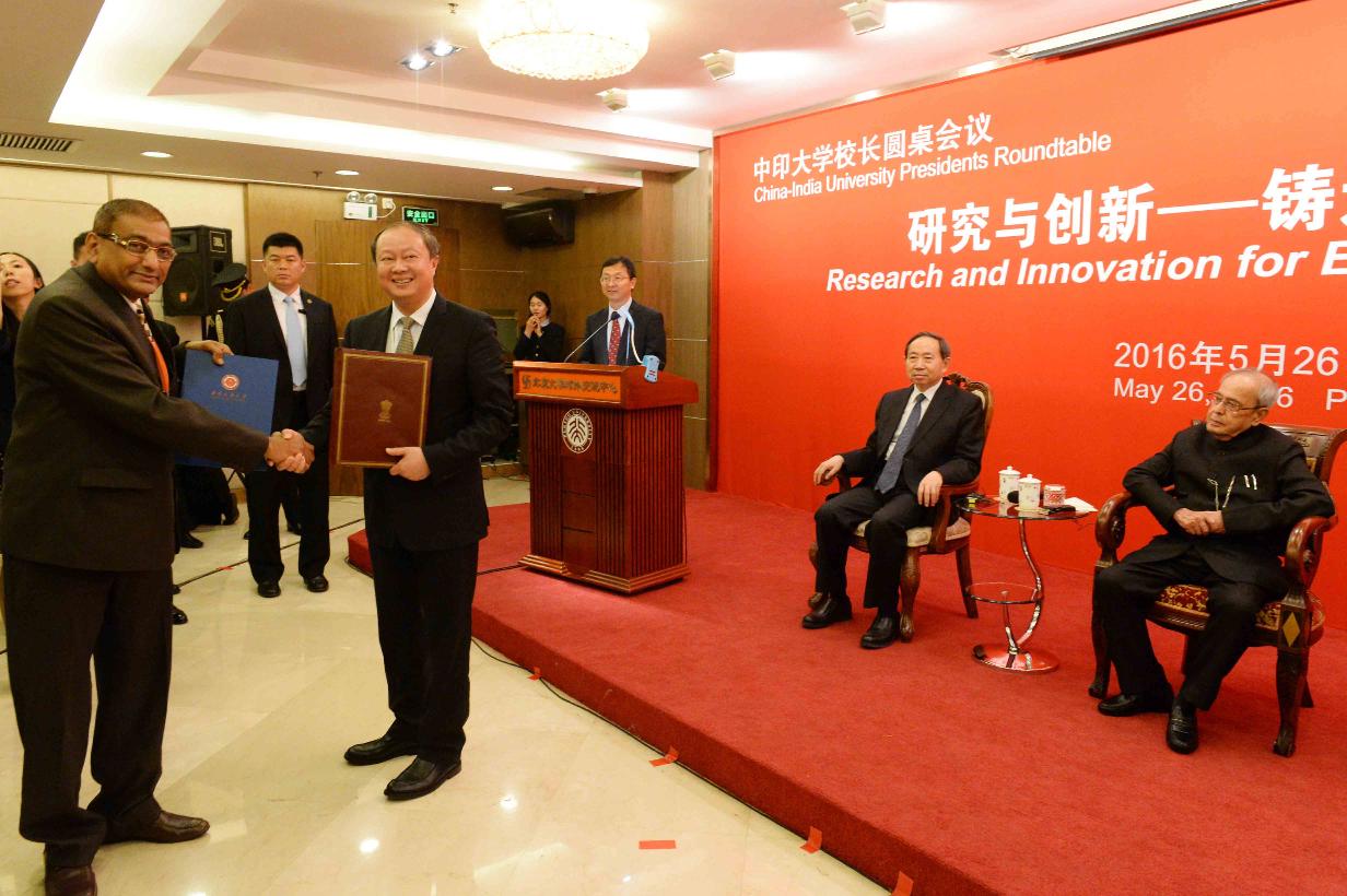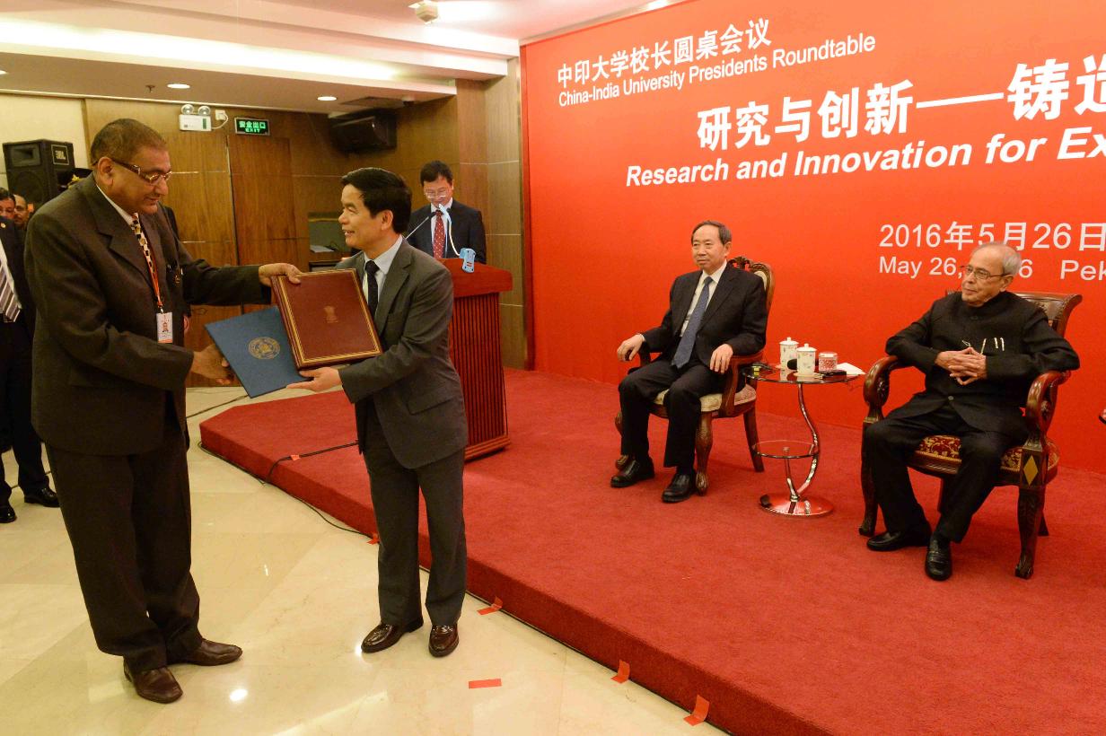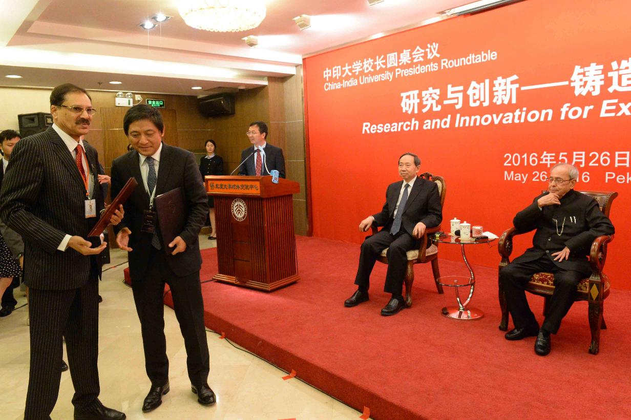 | Caption: | The President of India, Shri Pranab Mukherjee witnessing the exchanging of various MoUs between India and China, at the India-China University Presidents Roundtable, in Beijing, People s Republic of China on May 26, 2016. |