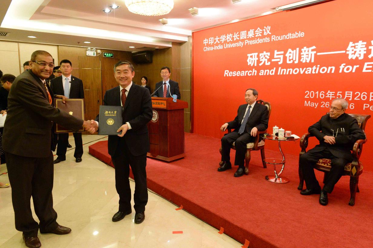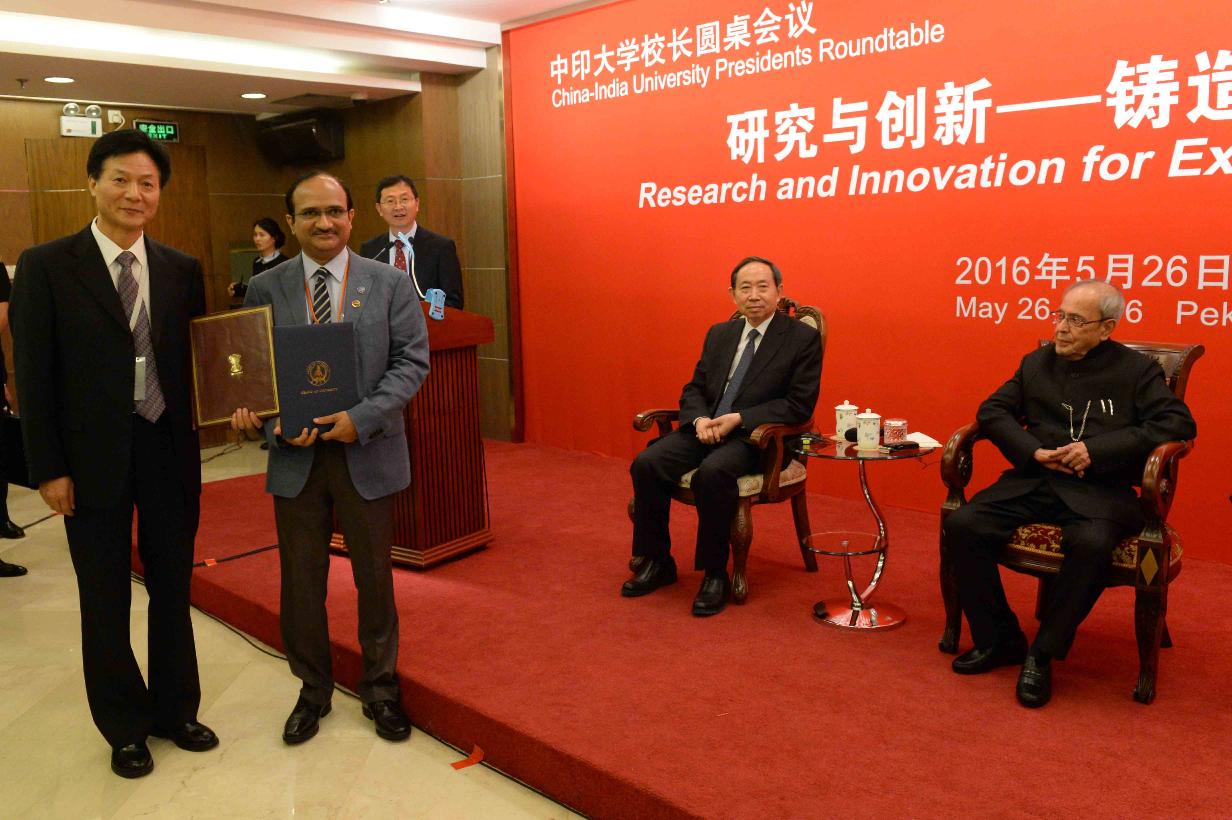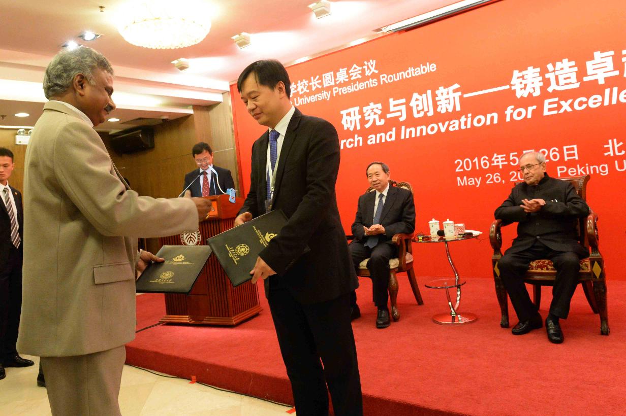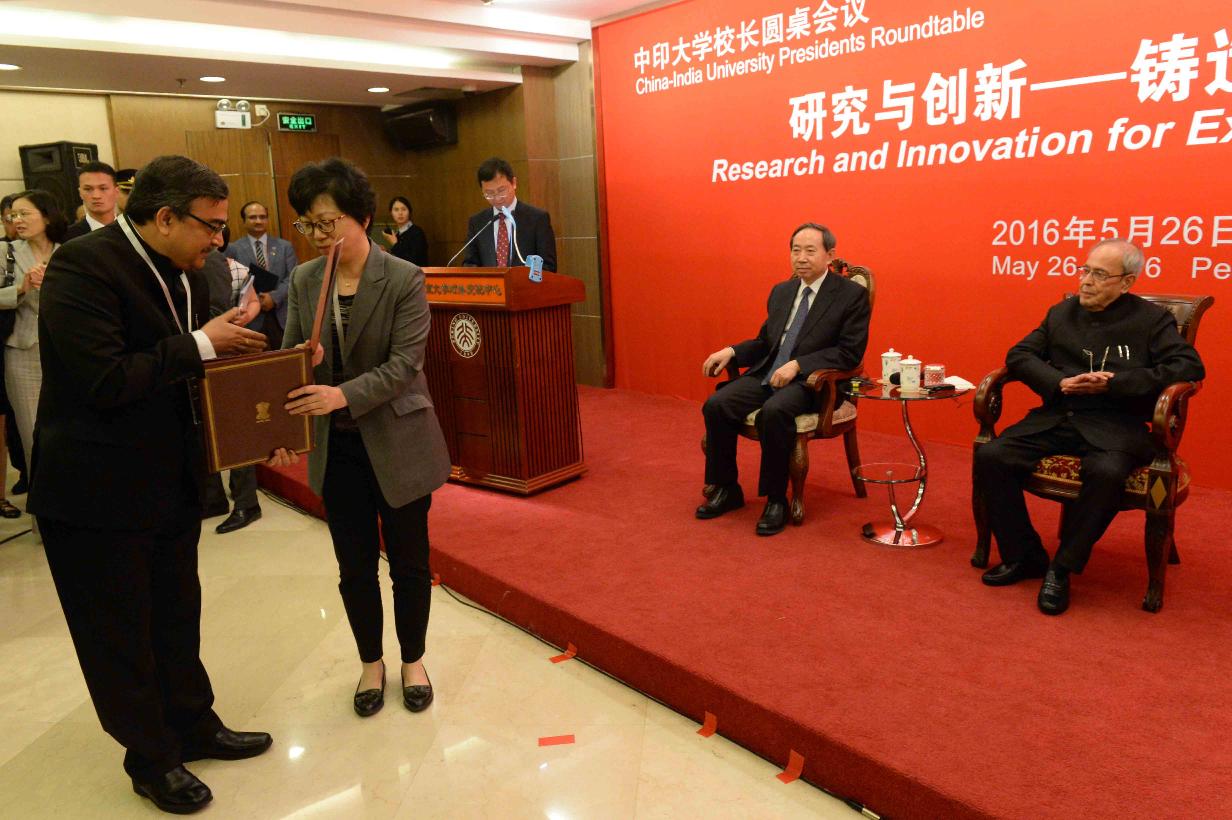 | Caption: | The President of India, Shri Pranab Mukherjee witnessing the exchanging of various MoUs between India and China, at the India-China University Presidents Roundtable, in Beijing, People s Republic of China on May 26, 2016. |