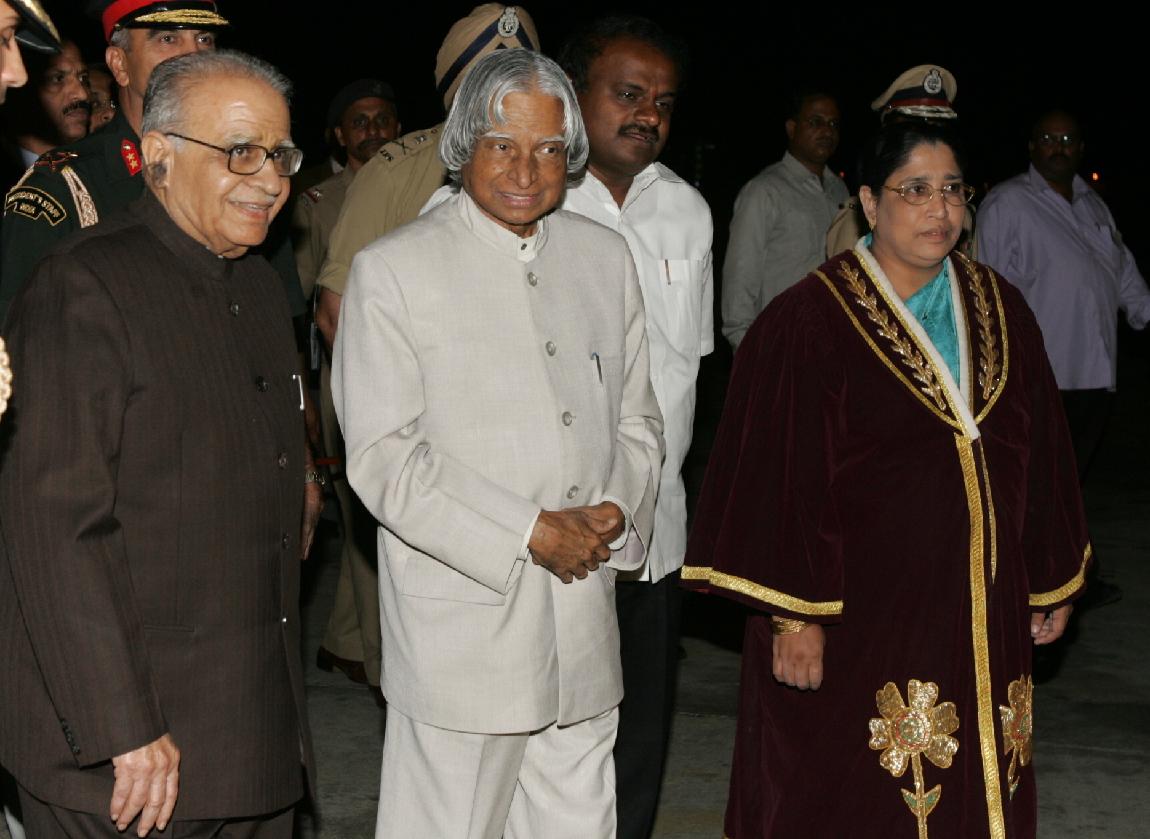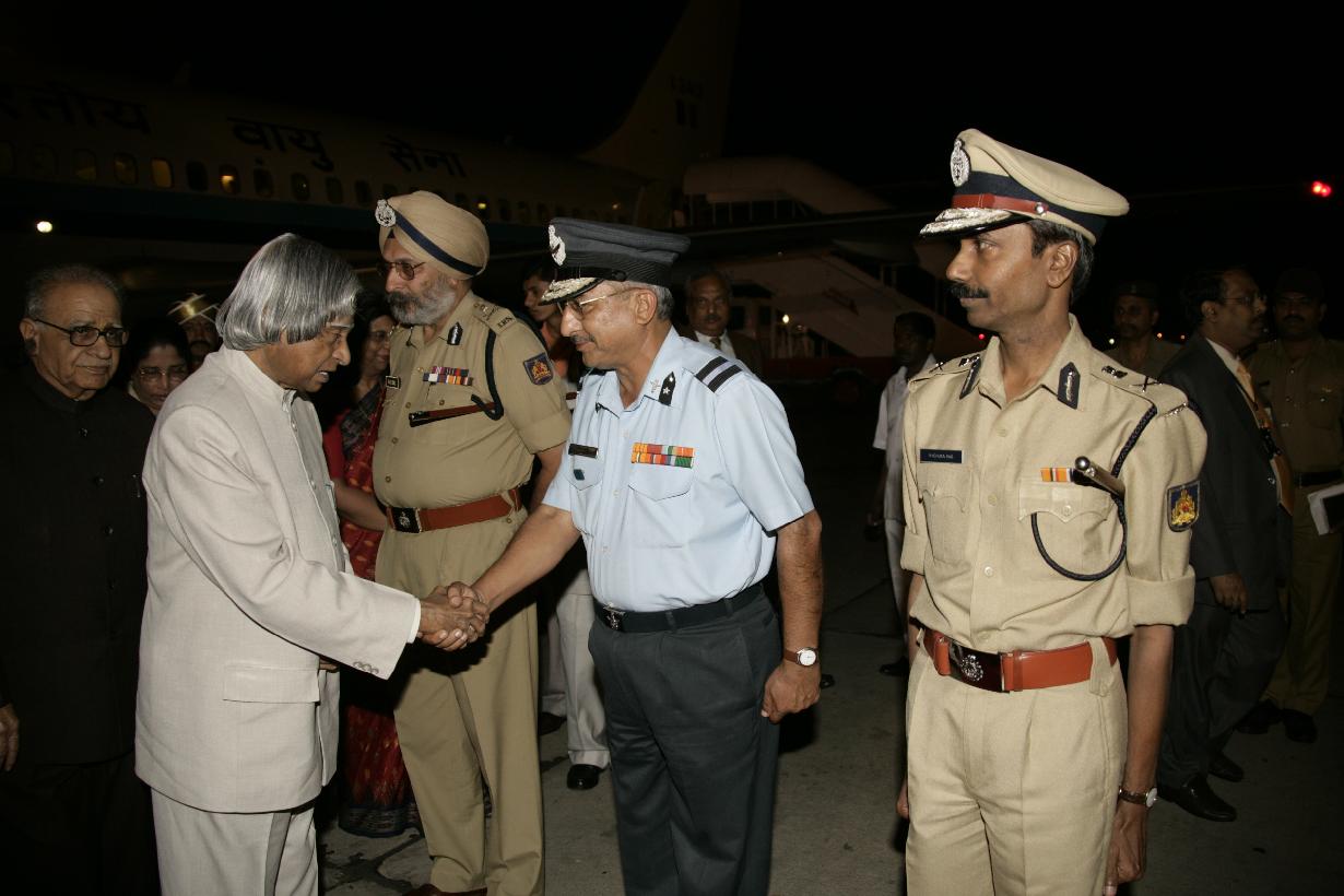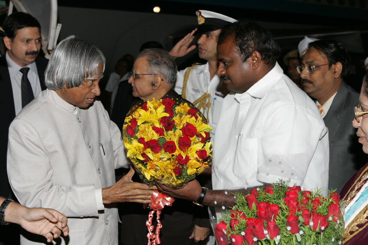 | Caption: | The President of India, Dr A P J Abdul Kalam being welcomed by the Governor of Karnataka, Shri T N Chaturvedi at Bangalore Airport in Karnataka on Oct 14, 2006 |