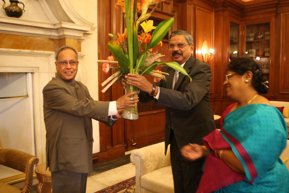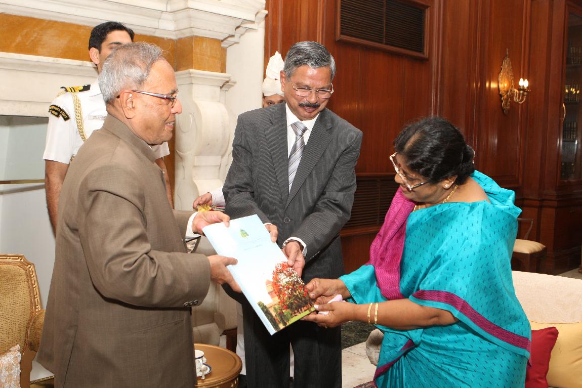 | Caption: | The President of India, Shri Pranab Mukherjee Meeting with Shri Justice Smt & Shri H L Dattu on March 14, 2013 |