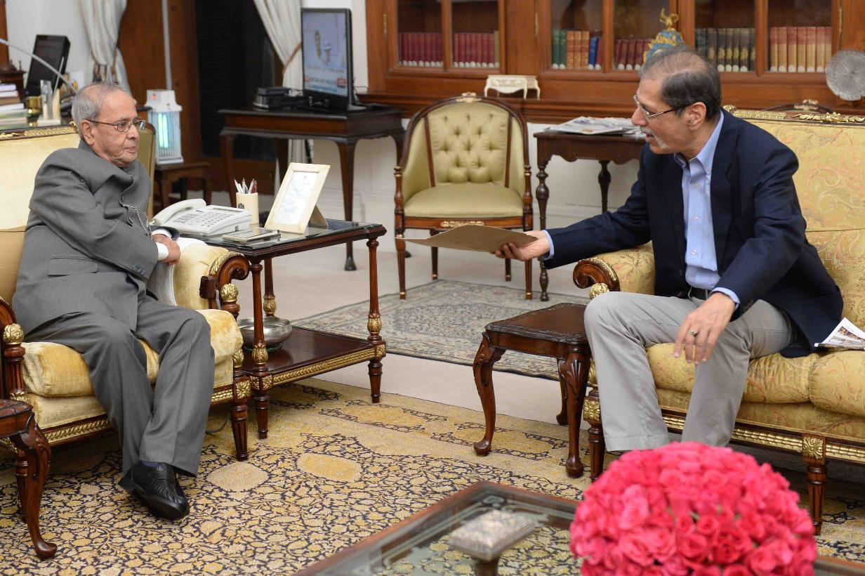 | Caption: | The President of India, Shri Pranab Mukherjee meeting with Shri Mahendra Ved, President, Commonwealth Journalists Association, at Rashtrapati Bhavan on February 21, 2017. |