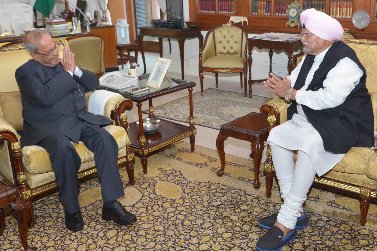 | Caption: | The President of India, Shri Pranab Mukherjee meeting with Dr. Buta Singh, former Union Minister along with his daughter Ms. Gurkirat Kaur, at Rashtrapati Bhavan on February 09, 2017. |