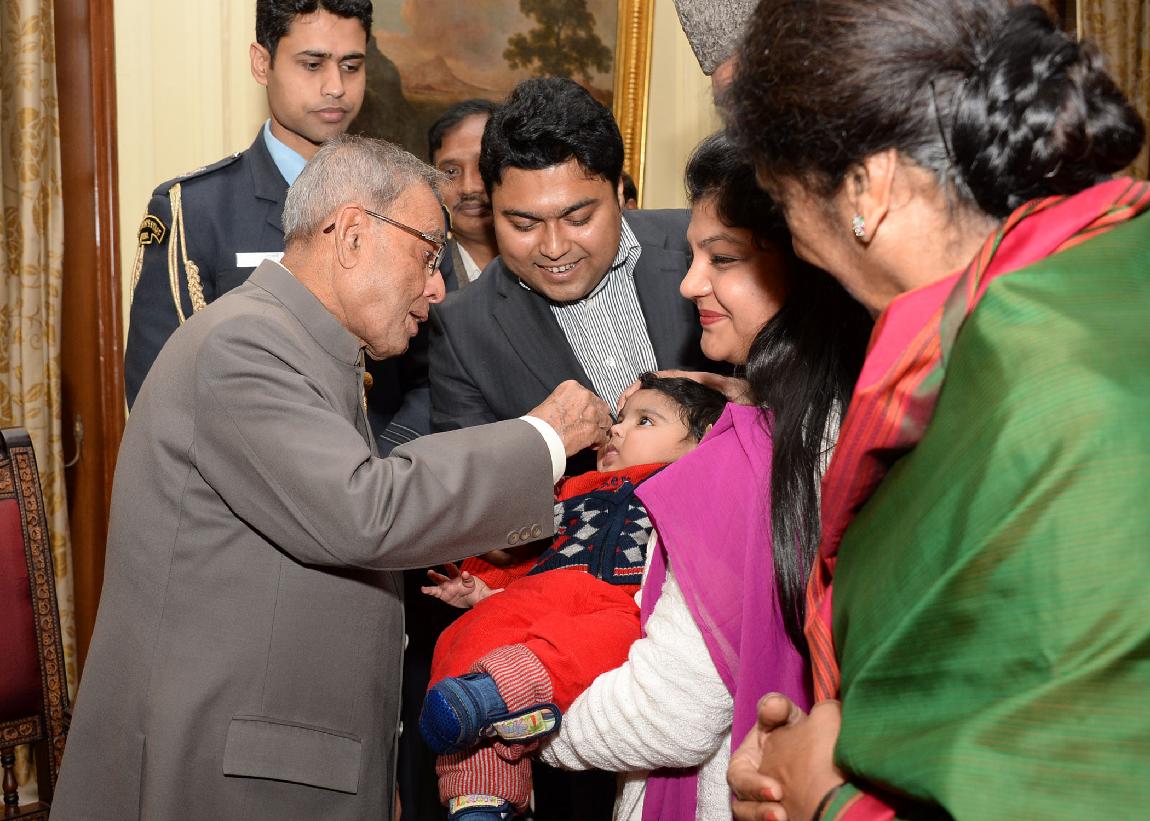 | Caption: | The President of India, Shri Pranab Mukherjee launching the Nationwide Polio Round by Administering Polio Drops to the Children at Rashtrapati Bhavan in New Delhi on Jan 18, 2014 |
