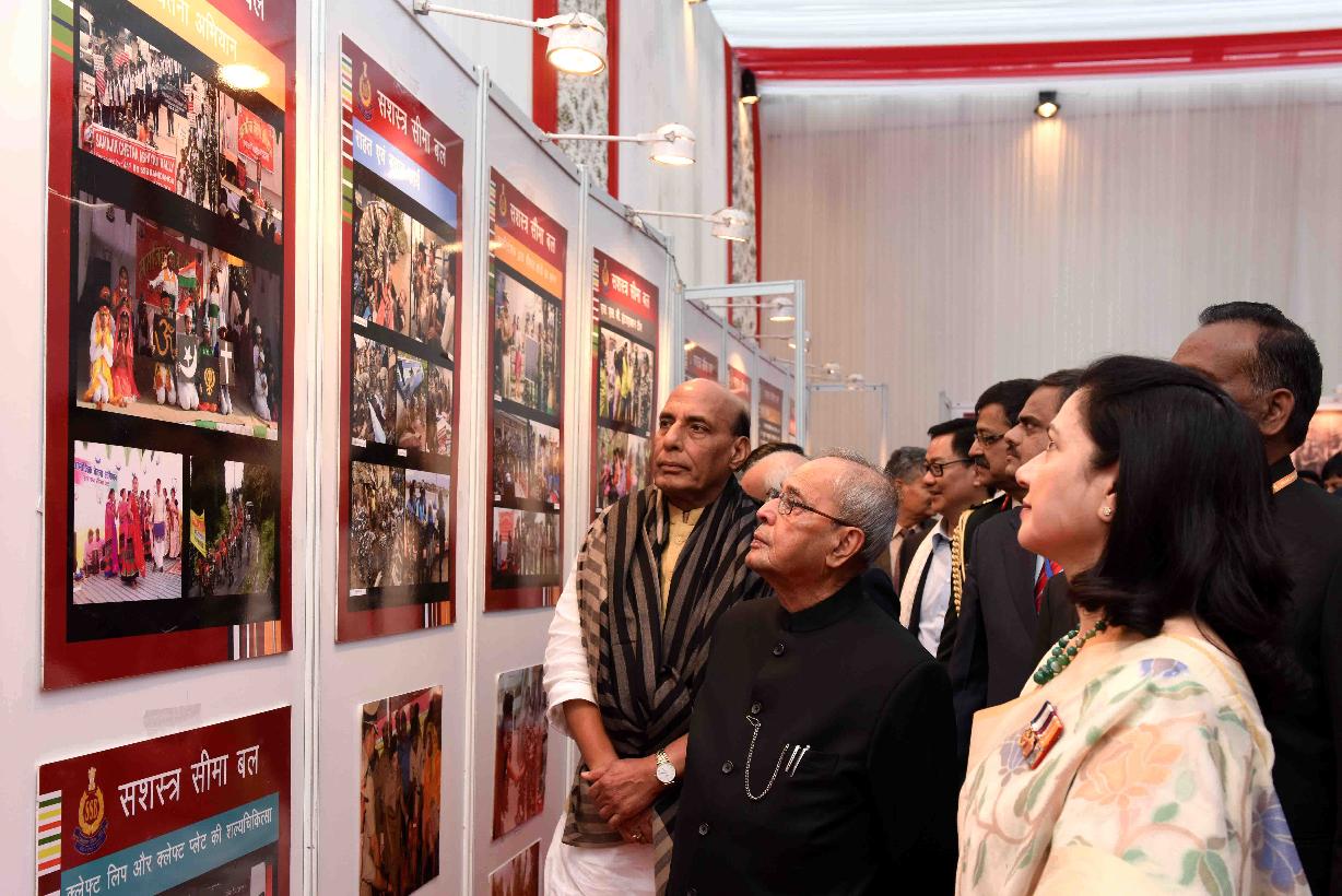 | Caption: | The President of India, Shri Pranab Mukherjee visiting an exhibition, at the Reception, organised on the occasion of 53rd Anniversary of Sashastra Seema Bal (SSB), in New Delhi on December 21, 2016. |