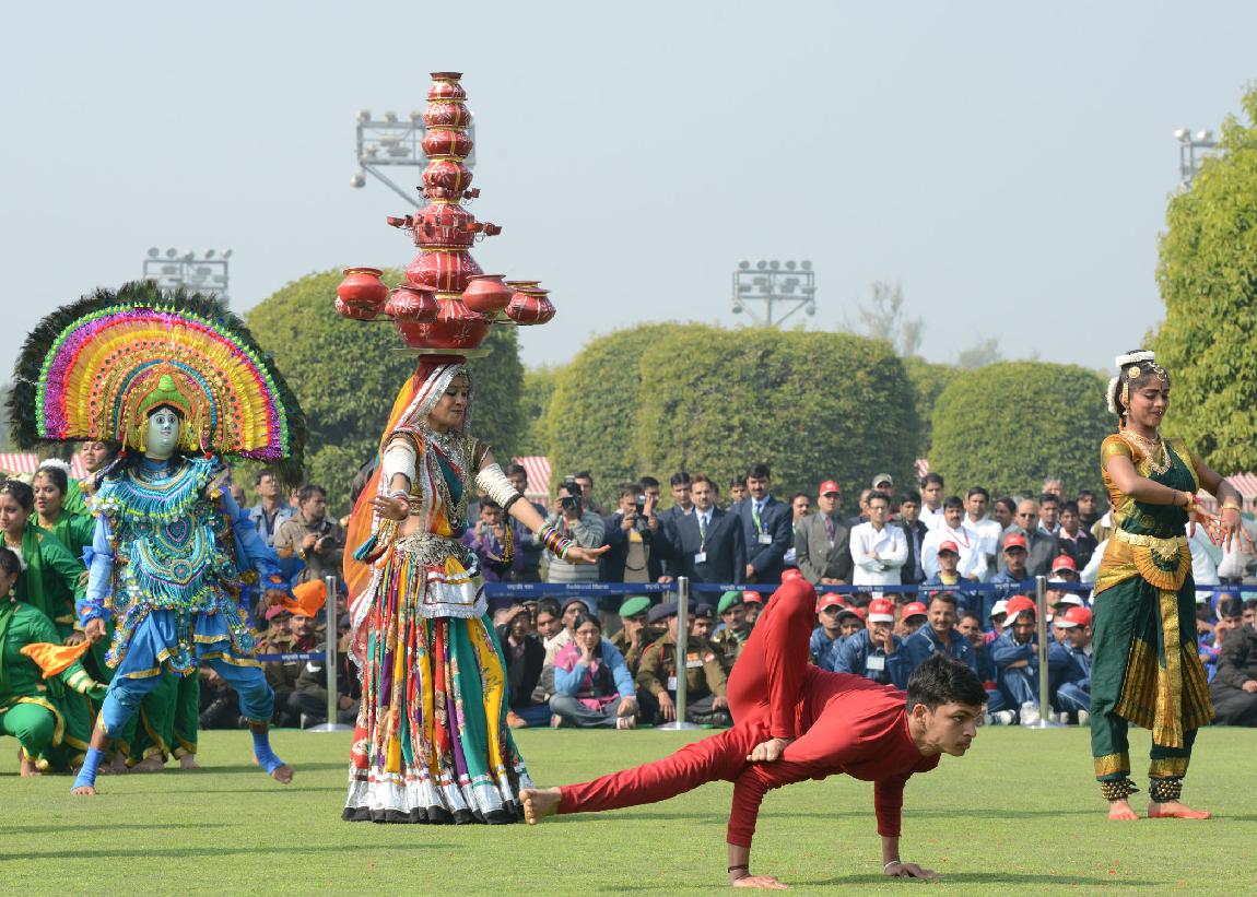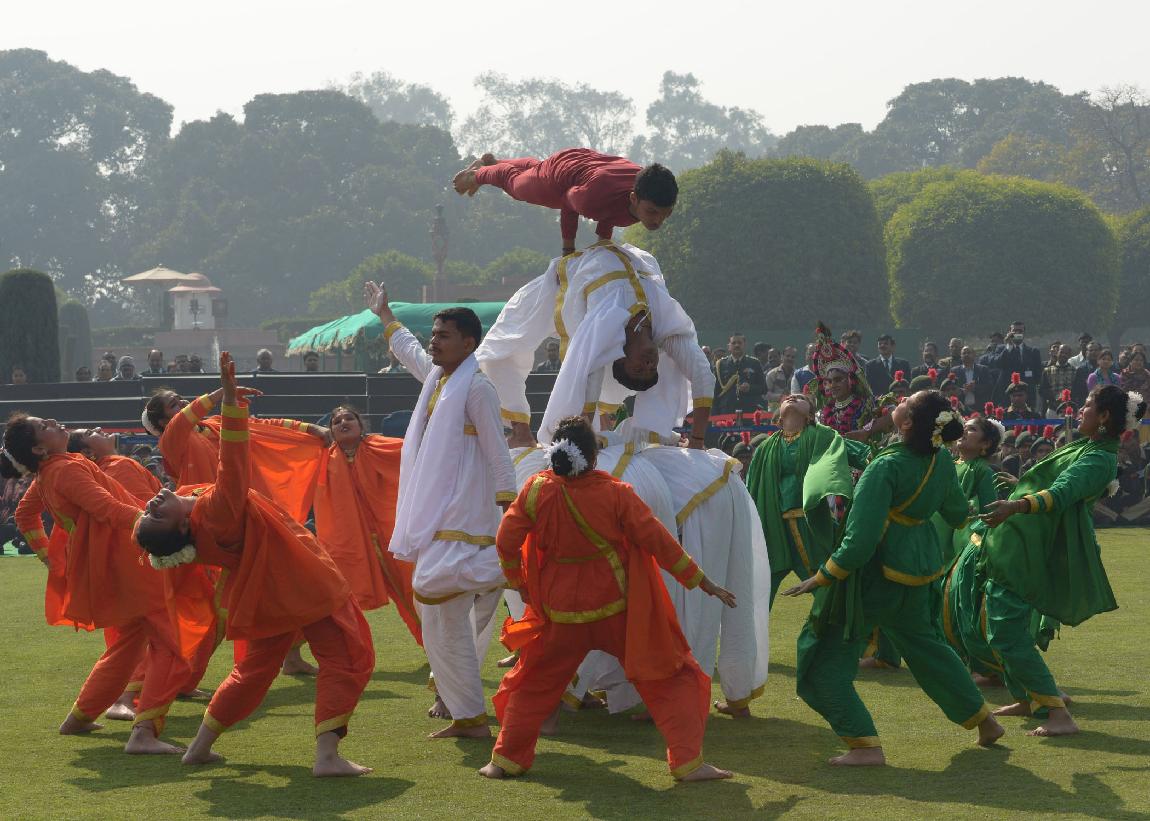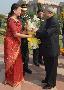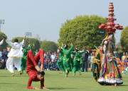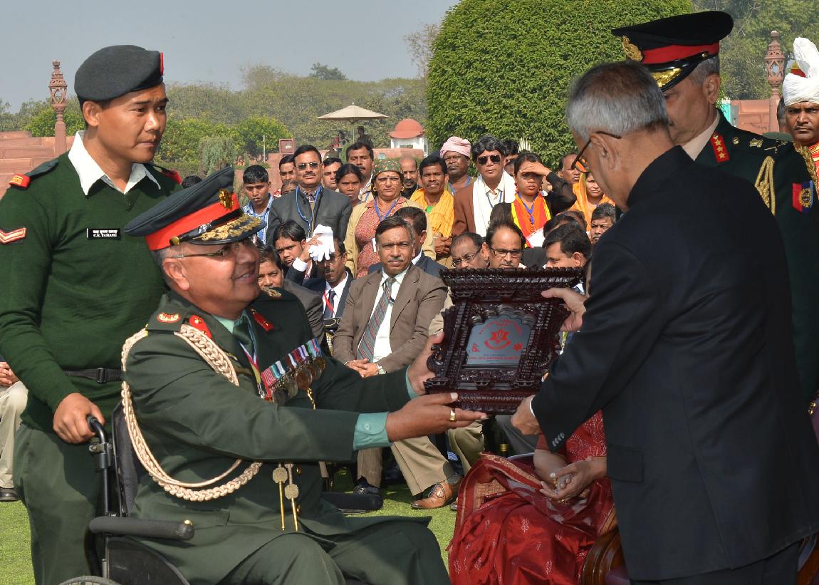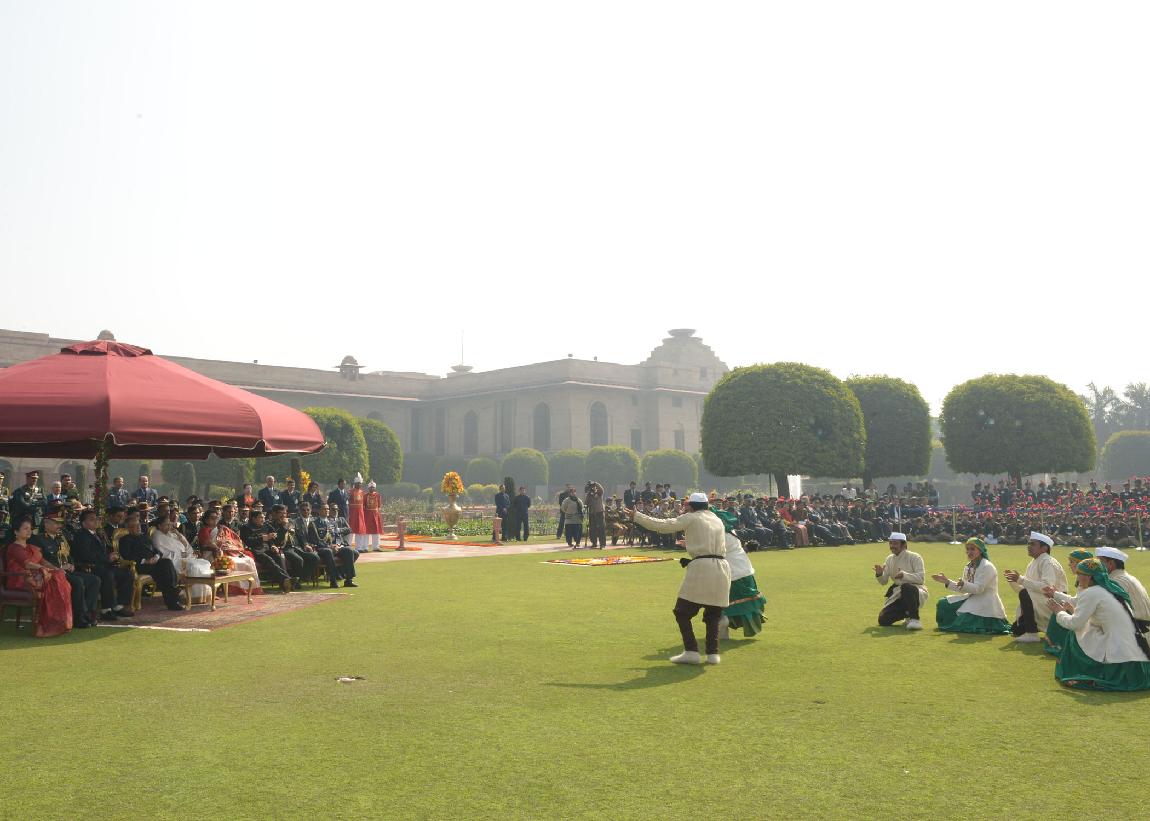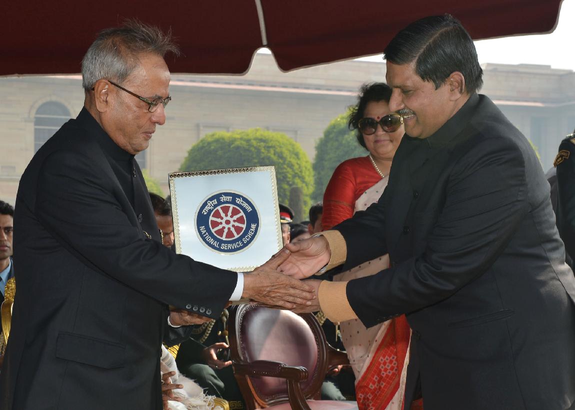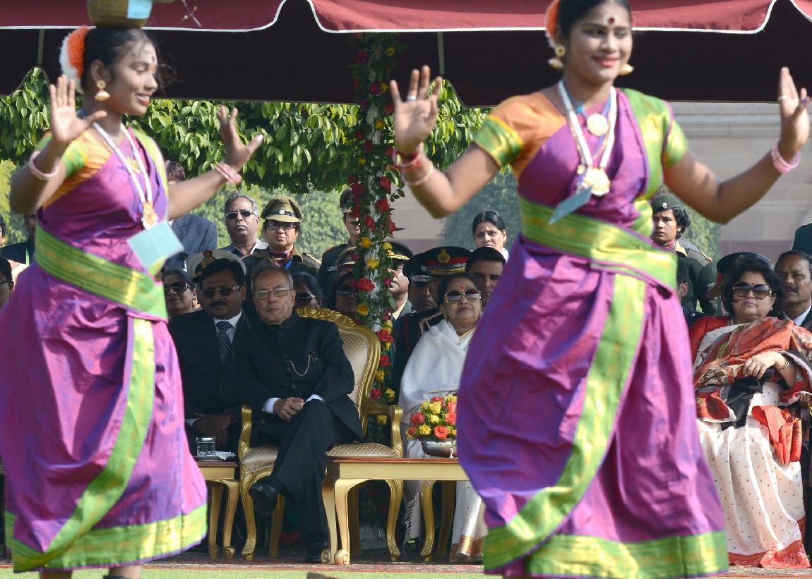 | Caption: | The President of India, Shri Pranab Mukherjee interacting with the Tribal Guests, Tableaux Artistes, Tractor Drivers, NSS Volunteers and NCC Cadets and Officials (Participants of the Republic Day Parade) at Mughal Gardens of Rashtrapati Bhavan in New Delhi on Jan 27, 2014 |