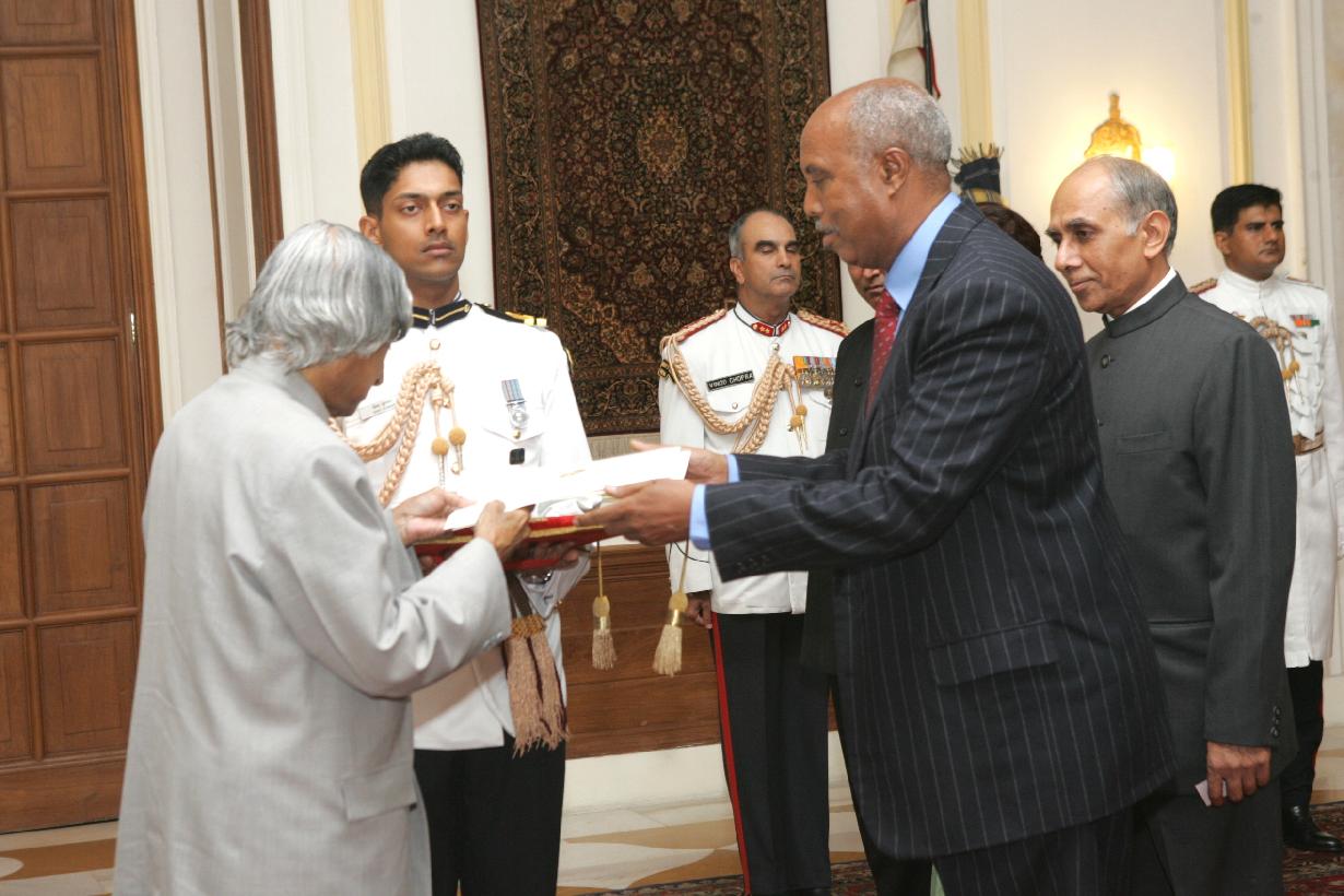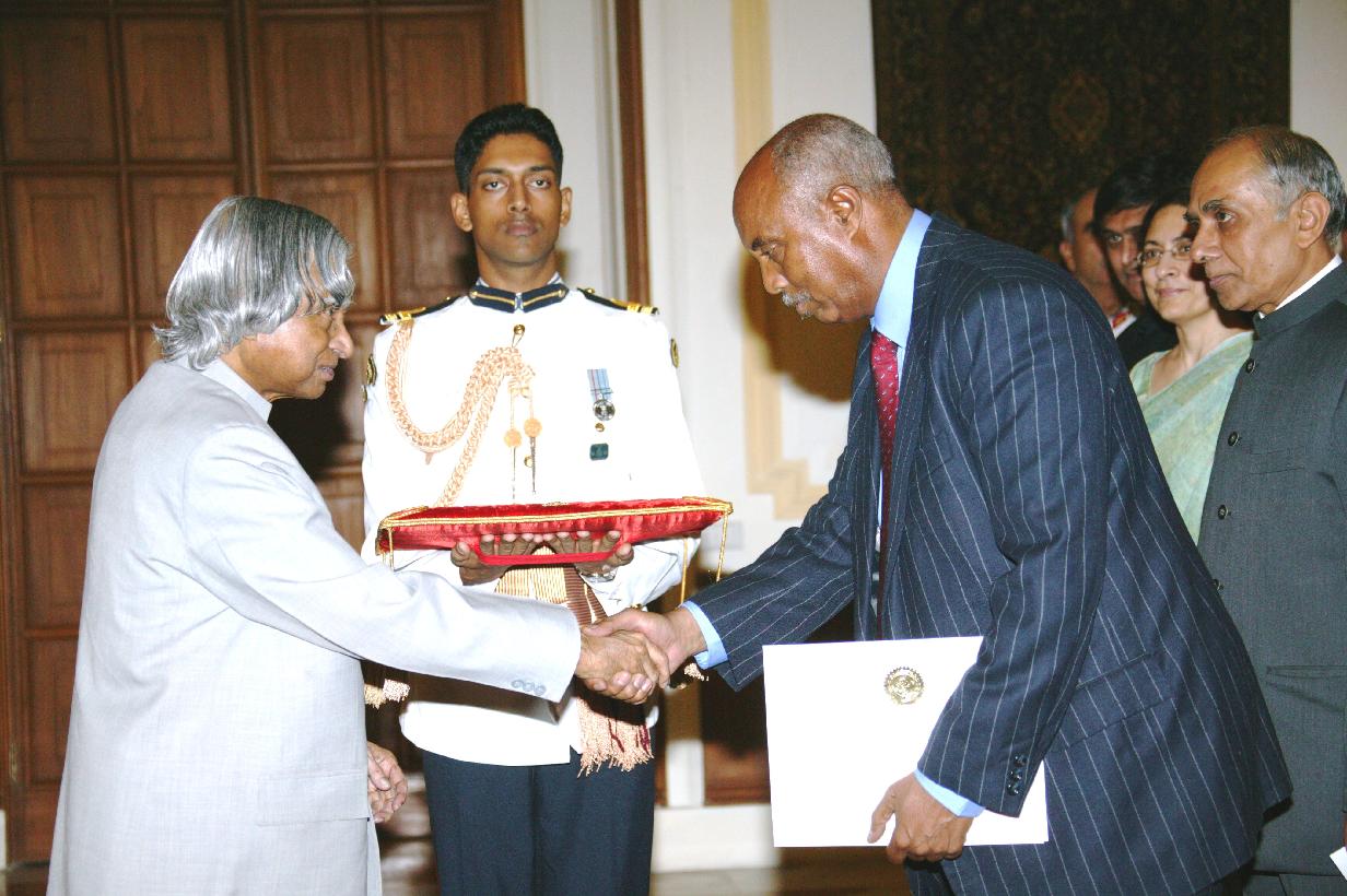 | Caption: | The Ambassador-Designate of State of Eritrea to India, HE Mr Alem Tsehaye Woldemariam presenting his credentials to the President of India, Dr A P J Abdul Kalam at the Yellow Drawing Room of Rashtrapati Bhavan in New Delhi on July 19, 2007 |