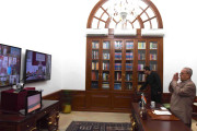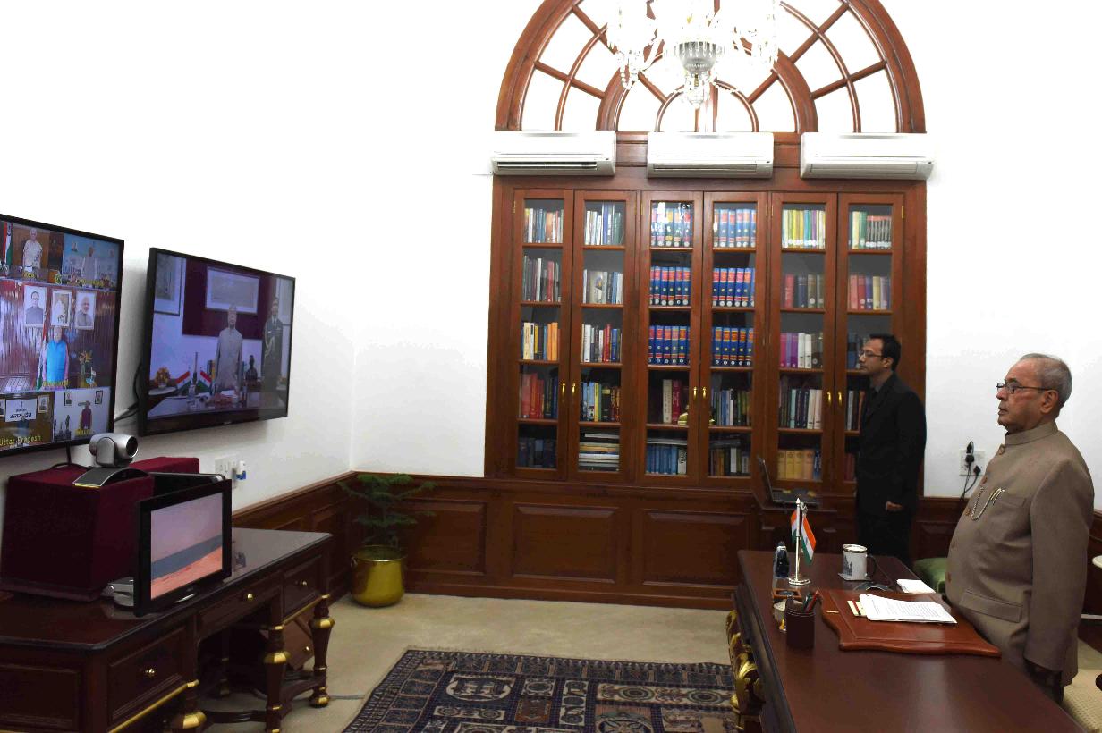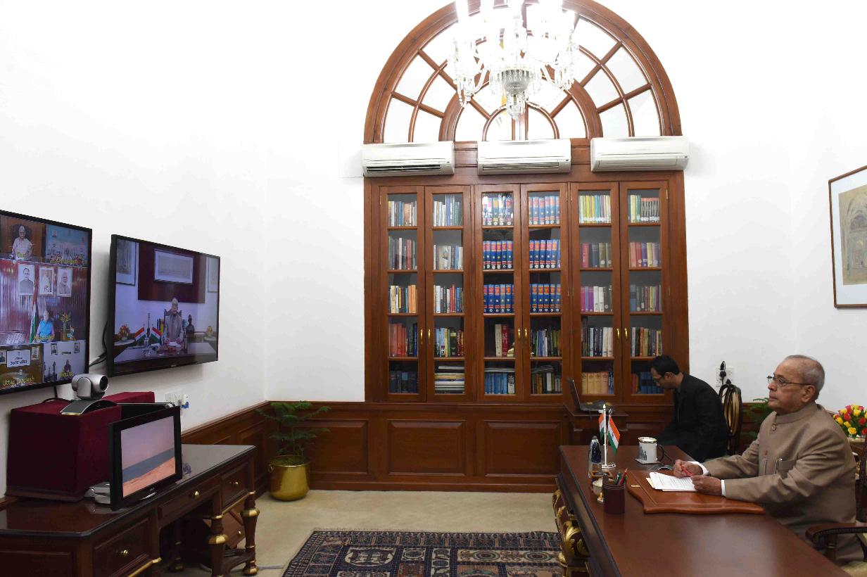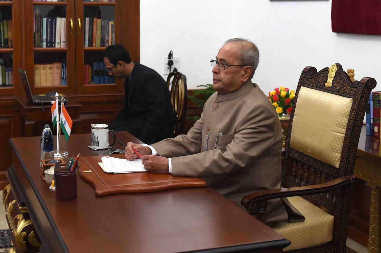 | Caption: | The President of India, Shri Pranab Mukherjee delivering the New Year message to the Governors and Lt. Governors of States/UTs through Video Conference using National Knowledge Network from Rashtrapati Bhavan on January 05, 2017. |