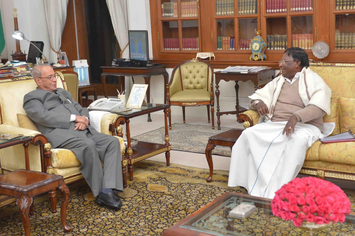 | Caption: | The President of India, Shri Pranab Mukherjee meeting with Shri V. Narayanasamy, Chief Minister of Puducherry, at Rashtrapati Bhavan on January 12, 2017. |