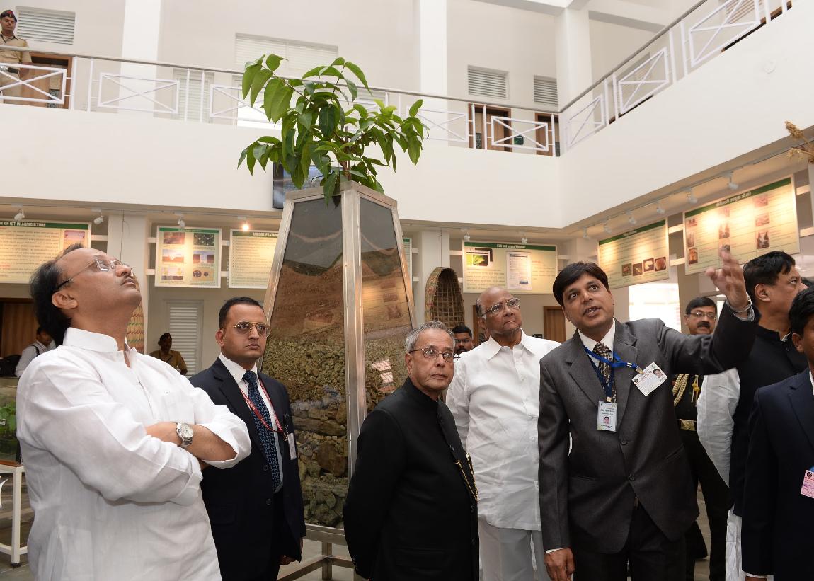 | Caption: | The President of India, Shri Pranab Mukherjee inaugurating the New Building and Exhibition at Krishi Vigyan Kendra at Malegaon in Maharashtra on Jan 19, 2014 |