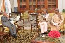 | Caption: | The President of India, Shri Pranab Mukherjee meeting with Shri B.S. Sanyasi Maharaj, Secretary, Gaudiya Mission, Kolkata along with Shri Sridhar Maharaj from Gaudiya Mission, Delhi, at Rashtrapati Bhavan on January 12, 2017. |