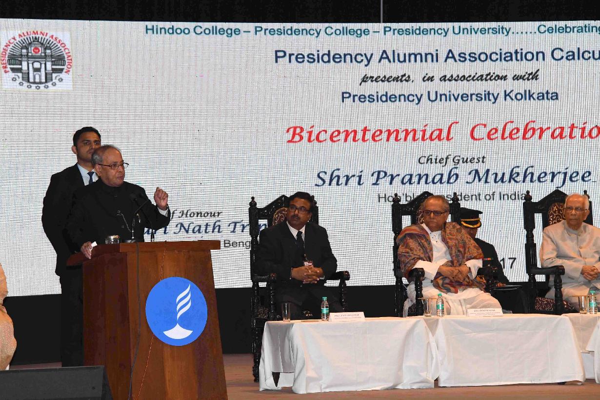 | Caption: | The President of India, Shri Pranab Mukherjee addressing at the inauguration of Bicentenary celebrations of Presidency University, at Kolkata, in West Bengal on January 20, 2017. |
