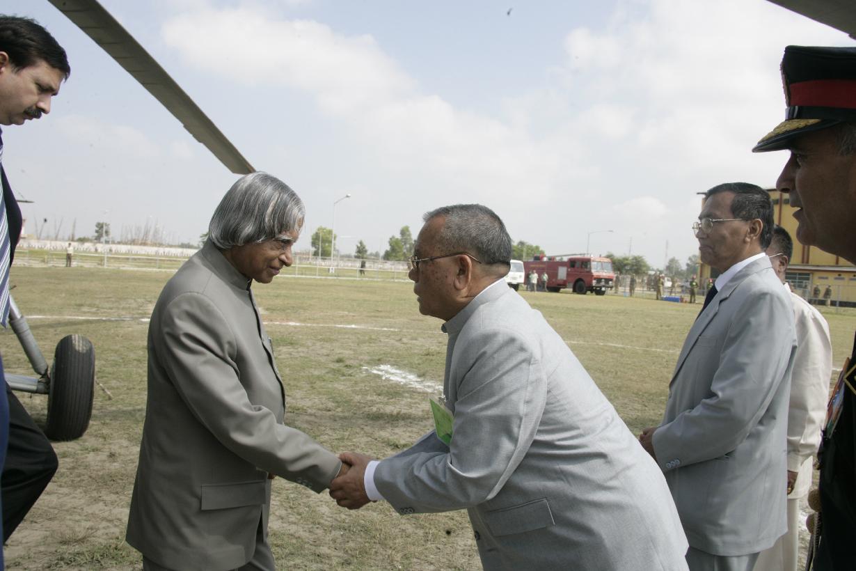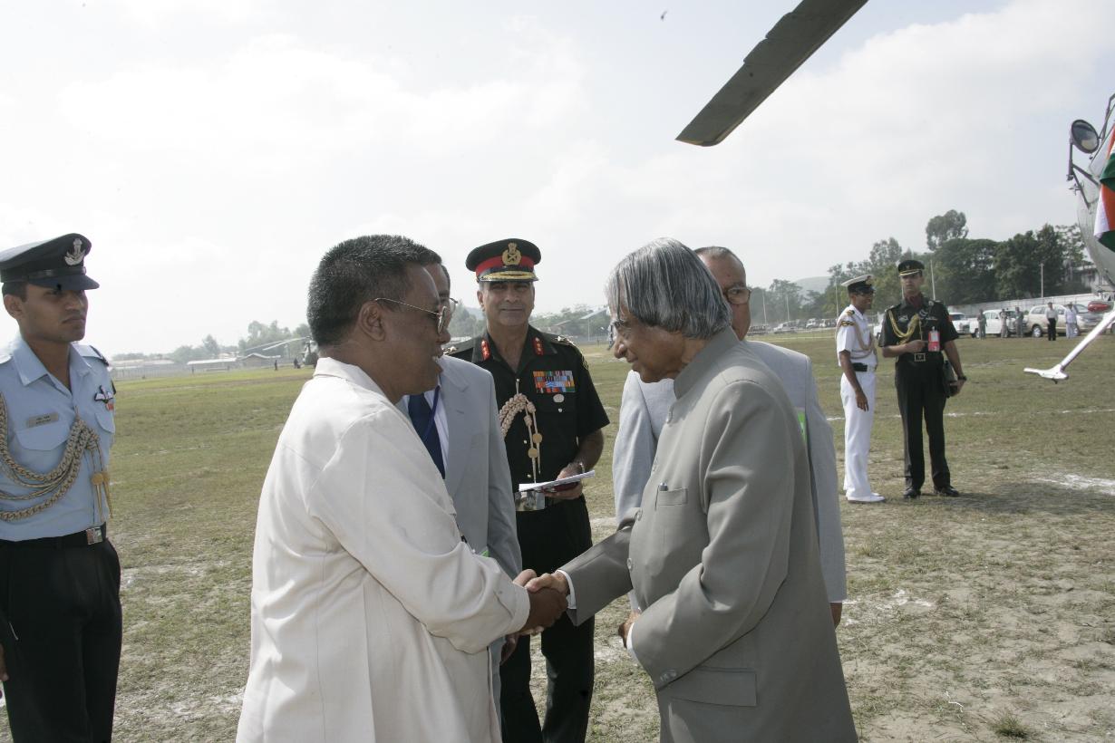 | Caption: | The President of India, Dr A P J Abdul Kalam arriving at Manipur University Helipad in Manipur on Oct 16, 2006 |