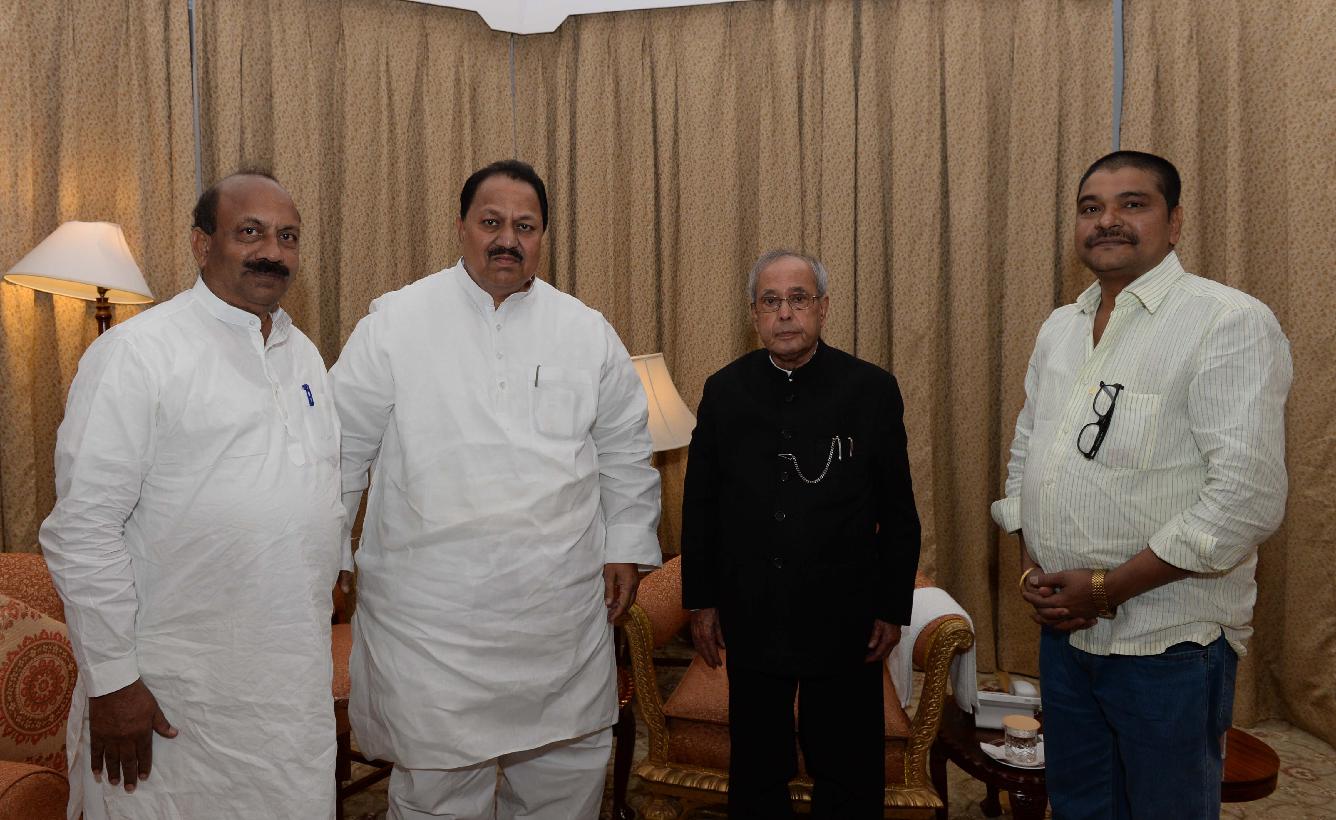 | Caption: | The President of India, Shri Pranab Mukherjee meeting with Shri D. Srinivas, MP alongwith Shri R. Satyanaryana and Shri A.V. Satyanarayana, at Rashtrapati Nilayam, Bolarum, in Secunderabad on December 27, 2016. |